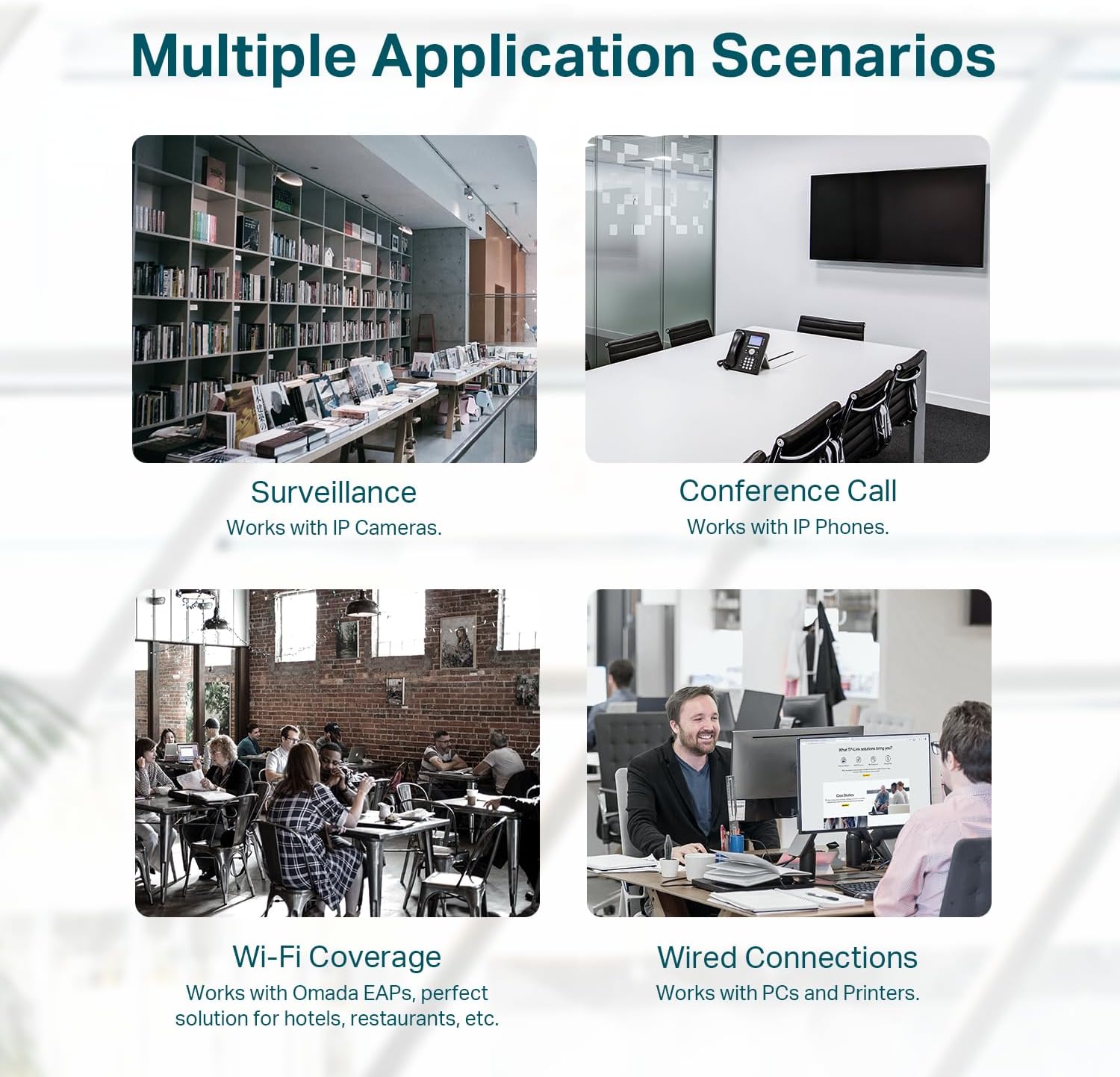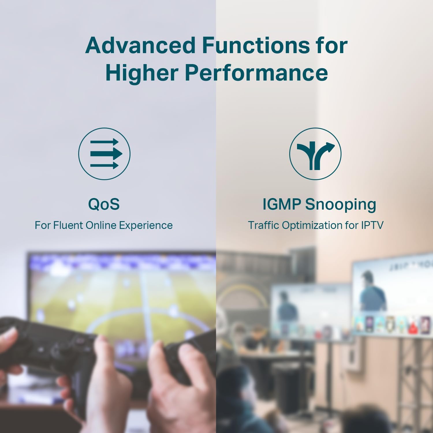 - ๐๐๐ฏ๐๐ง๐๐๐ ๐๐จ๐๐ญ๐ฐ๐๐ซ๐ ๐ ๐๐๐ญ๐ฎ๐ซ๐๐ฌ: Prioritize your traffic and guarantee high quality of video or voice data transmission with Port-based 802.1p/DSCP QoS and IGMP Snooping.