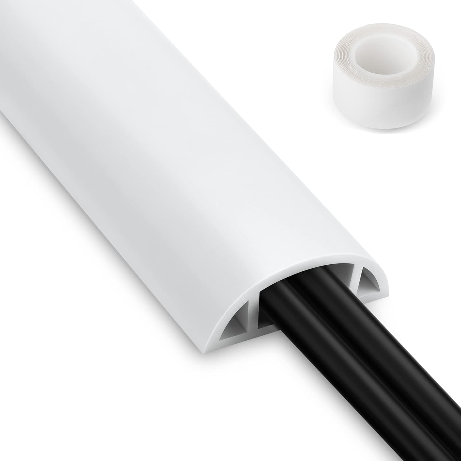 Cord Hider Floor - 3FT White Cord Cover, Soft PVC Wire Covers - Hides Cords - 0.7" W x 0.4" H