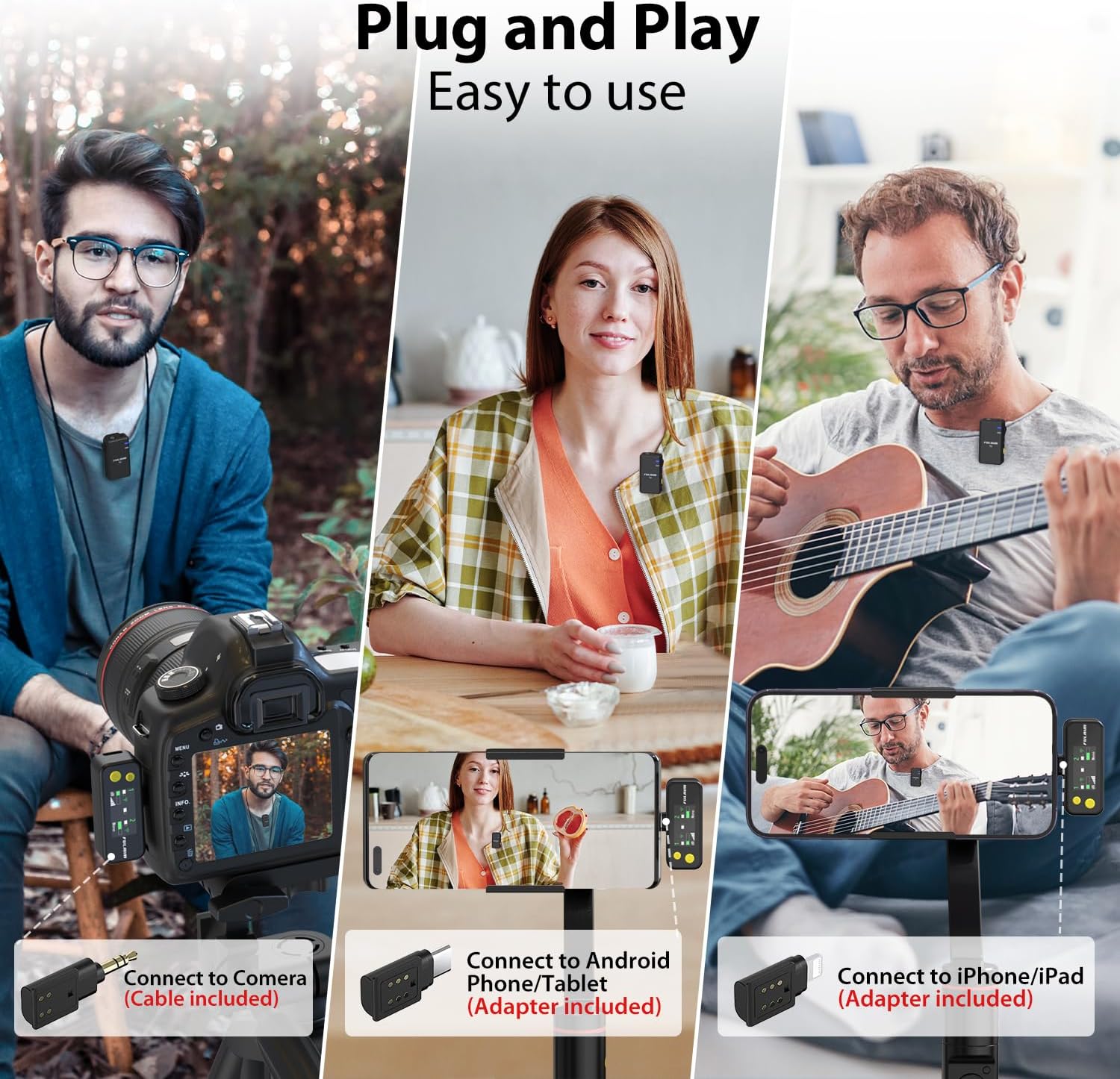 - Wide Compatibility: FULAIM X5M wireless lavalier mic comes with an iPhone adapter, type-c adapter, and 3.5mm audio cable, making it compatible with a wide range of devices, including iPhone and Android smartphones, as well as cameras.