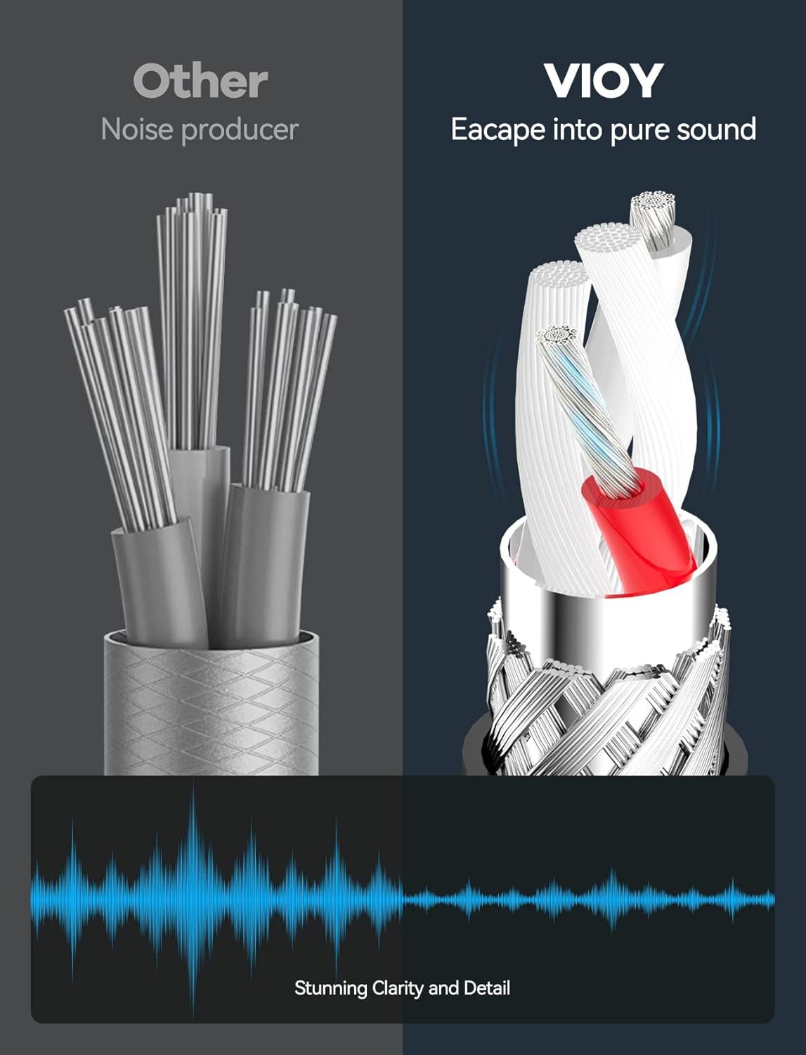 - [Astonishing Sound Quality]: With high pure copper core and dual shielding, VIOY 3.5 mm extension cable can transmits sounds from your music player to headphone or speaker without static or interference, perfectly ensuring durability and the minimal signal loss, and offering more clear sound. This immerses yourself in the music wherever you are, whenever you like