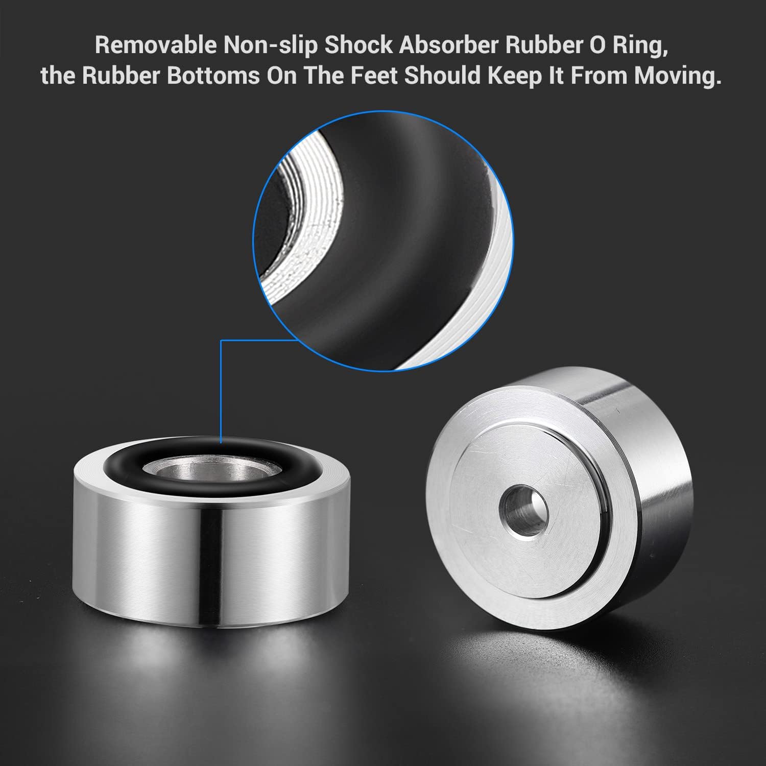 Facmogu 4PCS Silver Aluminum Alloy Speaker Isolation Feet, Turntable Isolation Pad for Reduce Vibration & Resonance, Speaker Spike Pads with Non-Slip Rubber Ring for Amplifier HiFi Devices Recorder CD