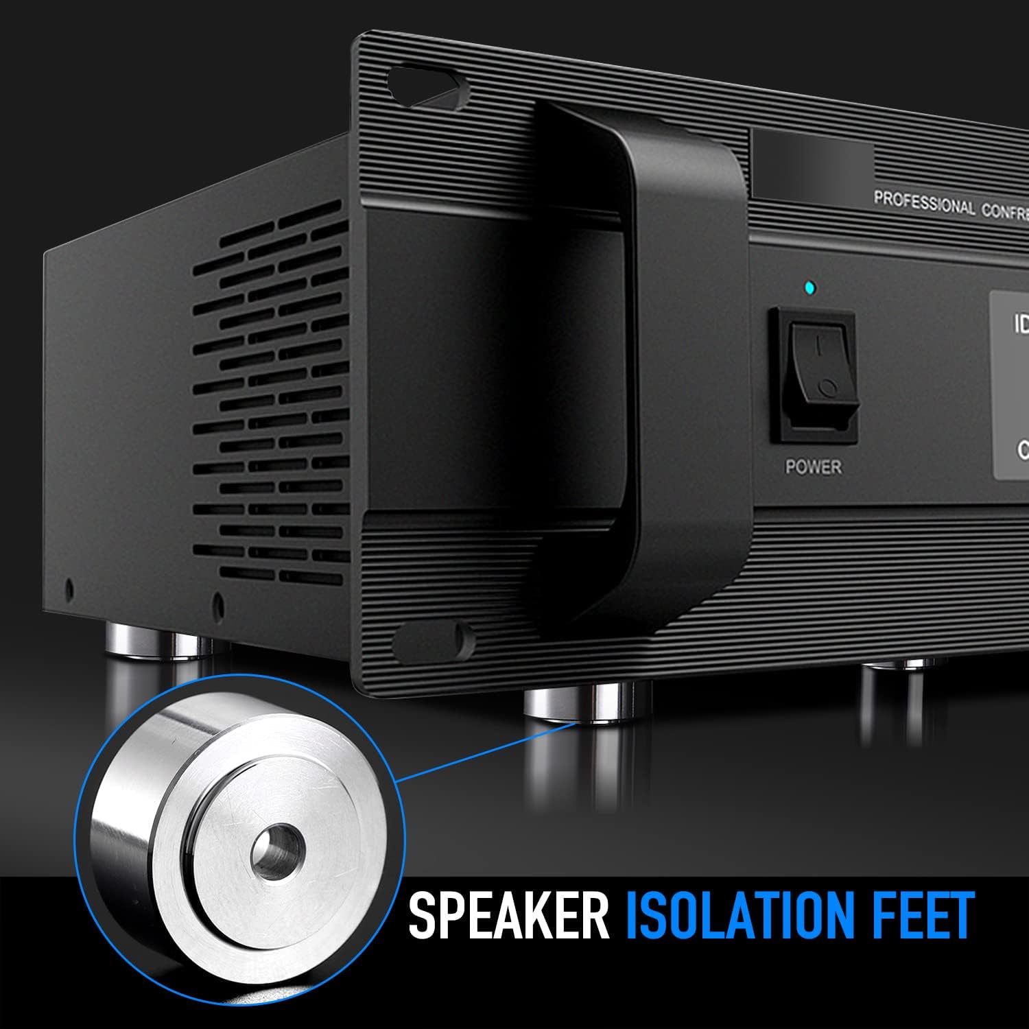 - 【Reduce Vibration】-- They can absorbing the harmful vibration from the supporting surface and internal reflection,eliminate the pollution between the ground and the speaker,resulting in tighter and cleaner sounding bass. There's a thickened rubber ring at the bottom of the Speaker Isolation Feet, which can effectively prevent slipping and shock absorption