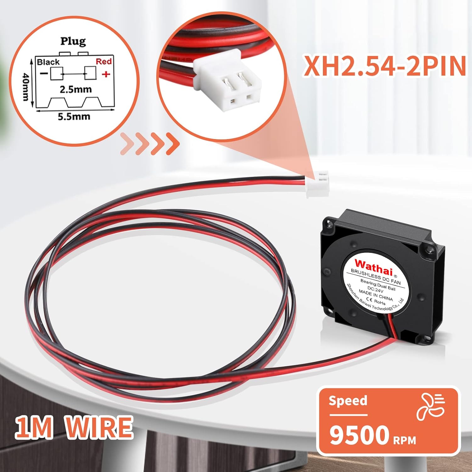 Wathai DC 4010 Blower Fan 24V Duall Ball High Speed with 1000mm/ 3.3 ft Wires 40mm x 10mm 24 Volt DC Brushless Radial Turbo Fans for Ender 3 Fan Upgrade Extruder Hot End Cooling 2 Pack