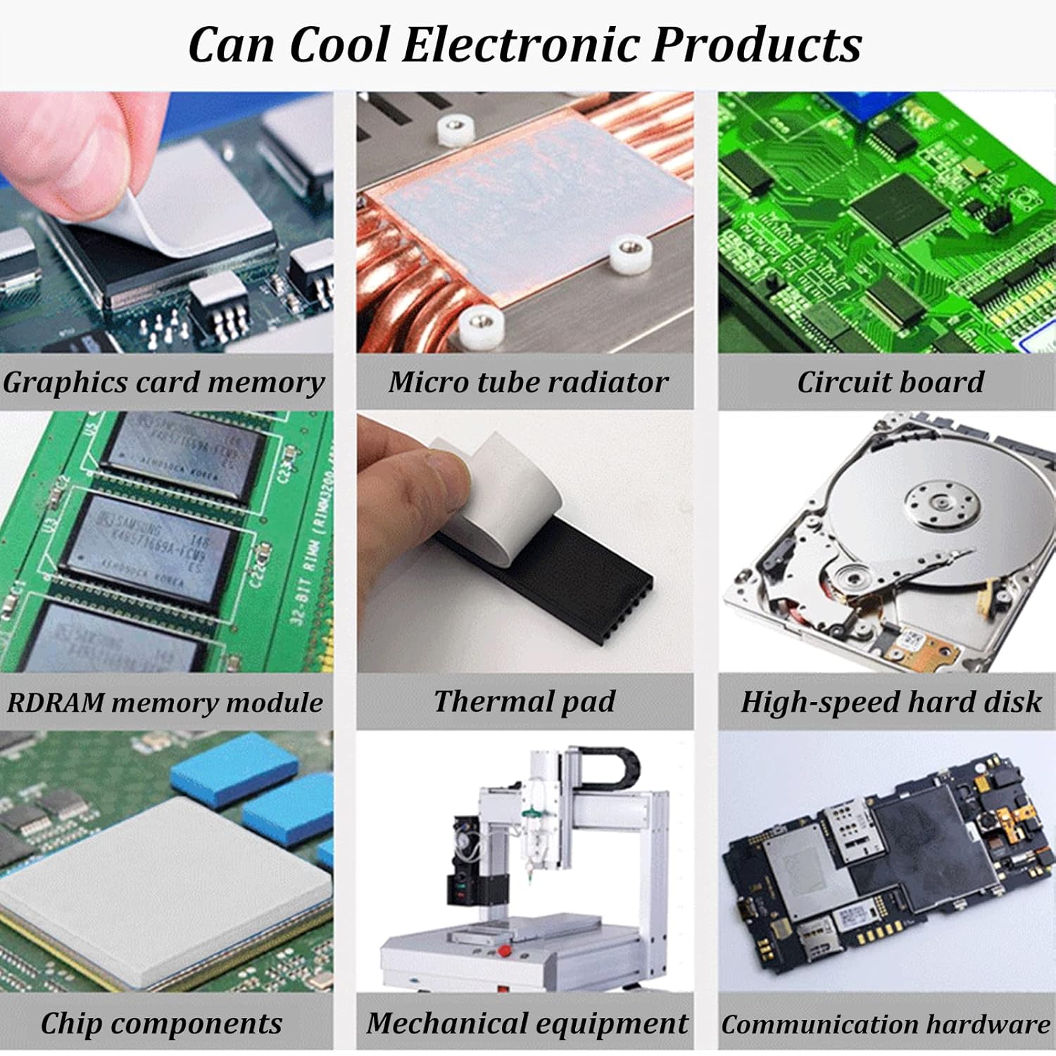 - 【Product Usage】Our thermal pads are suitable for: laptops, graphics cards, GPU, CPU, DRAM memory modules, SSD, Communication equipment, Solid state hard disk , Car control equipment, Gaming equipment.