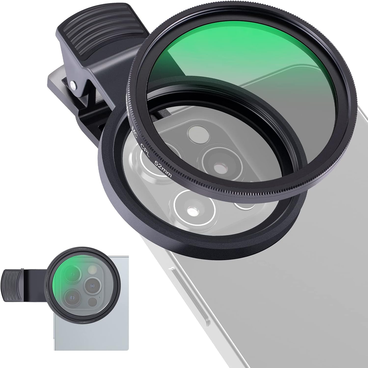 - 【CPL Filter for Phone & Camera】 This clip on 52mm circular polarizer filter kit is designed for most smartphones and any digital camera lens with a 52mm filter thread. The universal cell phone clamp is compatible with iPhone 16 Pro Max 16e 15 Pro Max 14 Plus 13 Mini 12 11 Samsung Galaxy S25 Ultra S24 S22 Ultra and other models. Ideal content creator essential photography accessories and influencer must have gear