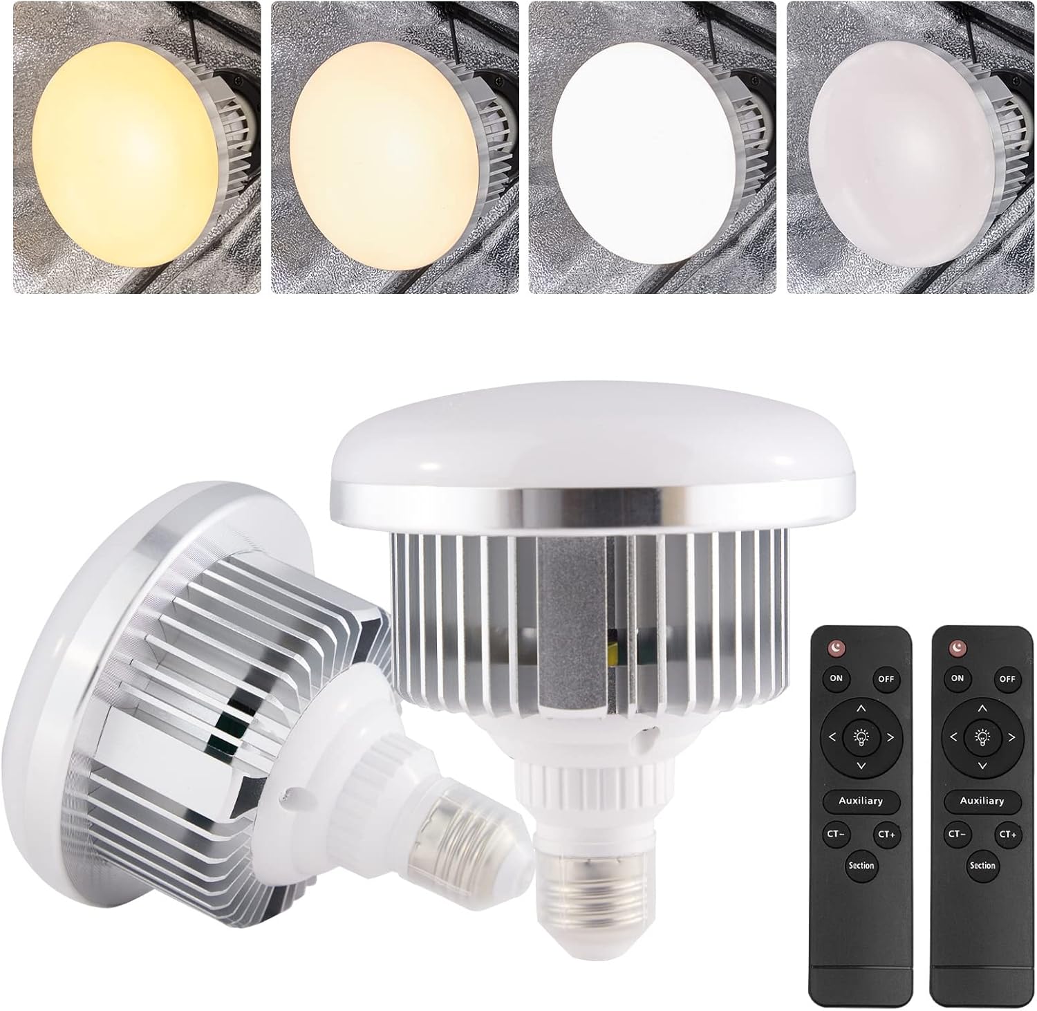 BEIYANG 2Pack 85W Photography Light Bulb for Softbox Lighting Kit Photography Soft Box Studio 6000K Bulbs LED Lighting, Remote Set