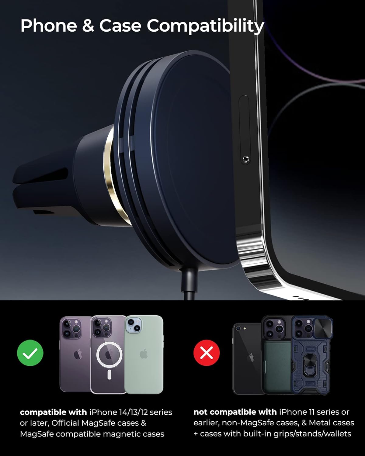 - Designed ONLY for MagSafe series iPhones, including iPhone 12 series, iPhone 13 series, iPhone 14 Series, and iPhone 15 series, and MagSafe compatible cases.