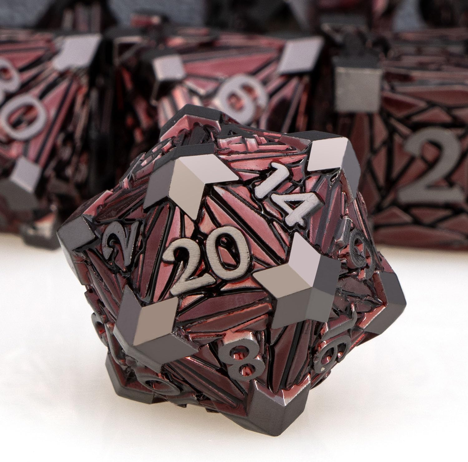7PCS Metal DND Dice Set with Box, Debris RPG Red D and D Dice for use with D&D Tabletop Games Role Playing Game Polyhedral Dice Set D20 D12 D10 D8 D6 D4