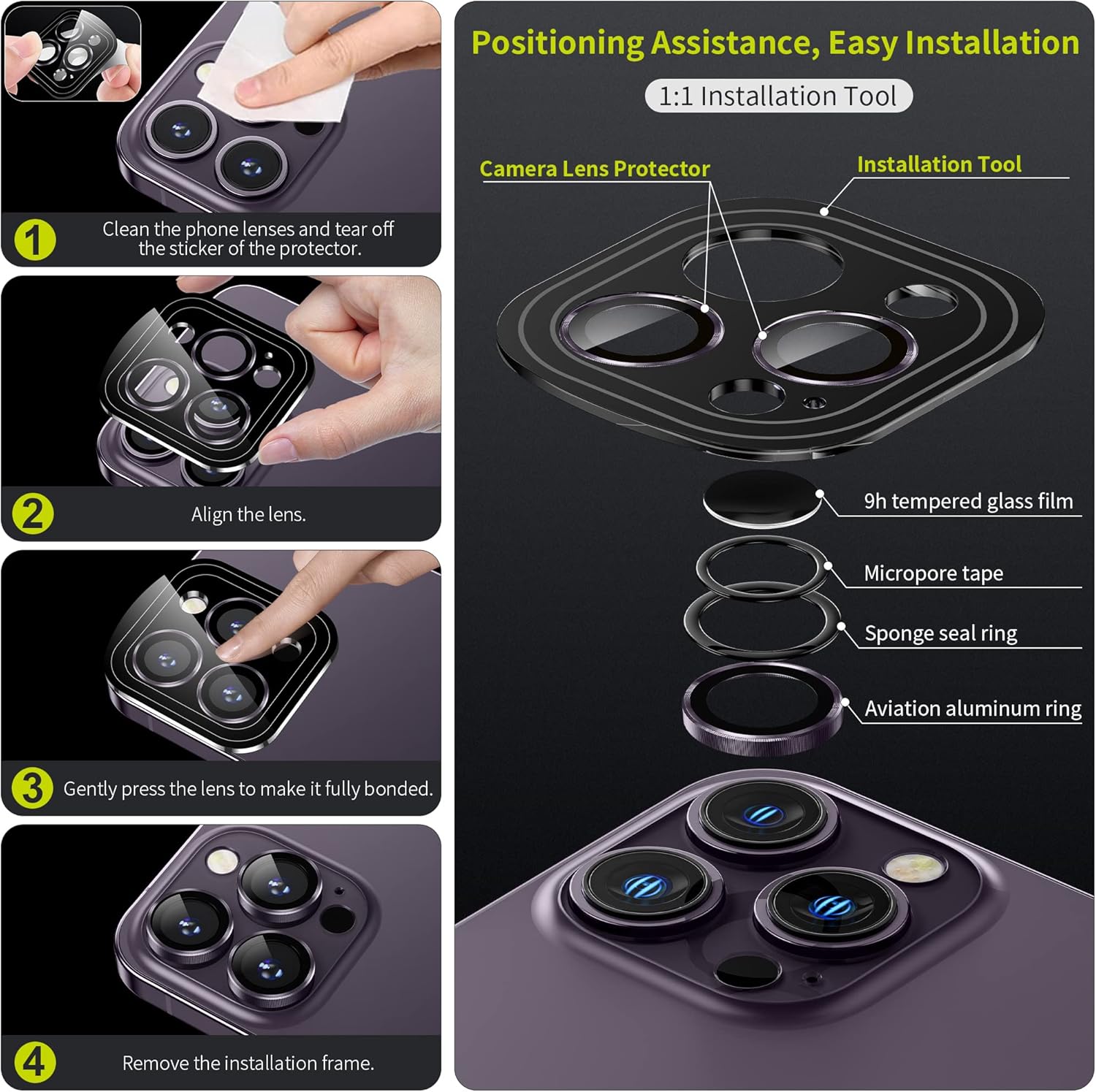 - iPhone 14 Pro Max & iPhone 14 Pro Accessories: The aluminum alloy metal 9H tempered glass camera lens protector is designed for iPhone 14 Pro Max (6.7 inch)/ iPhone 14 Pro (6.1 inch).