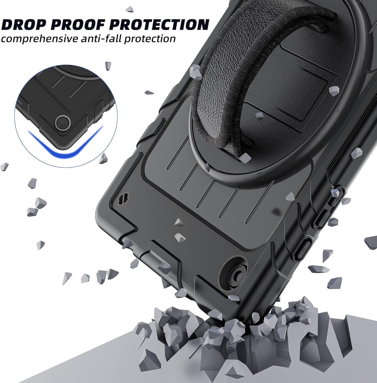 - Adjustable Hand / Shoulder Strap: The hand strap on the back helps you easily hold your Galaxy Tab A8 2022 tablet, avoiding falling due to skidding. Easier to use the tablet when traveling, working, or doing outdoor activities. An additional adjustable shoulder strap is kids-friendly for carrying the device, it also could hang wherever you want.