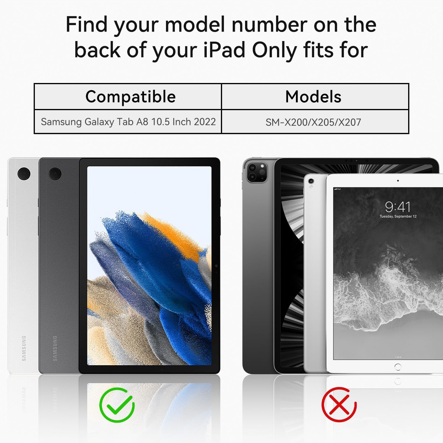 - Compatibility: This case is ONLY Compatible with Samsung Galaxy Tab A8 10.5 inch 2022 Released (Model: SM-X200/X205/X207). NOT compatible with other tablet models. Please confirm the model before purchase. (Please visit SEYMAC Stock to choose the correct case for your tablet.)