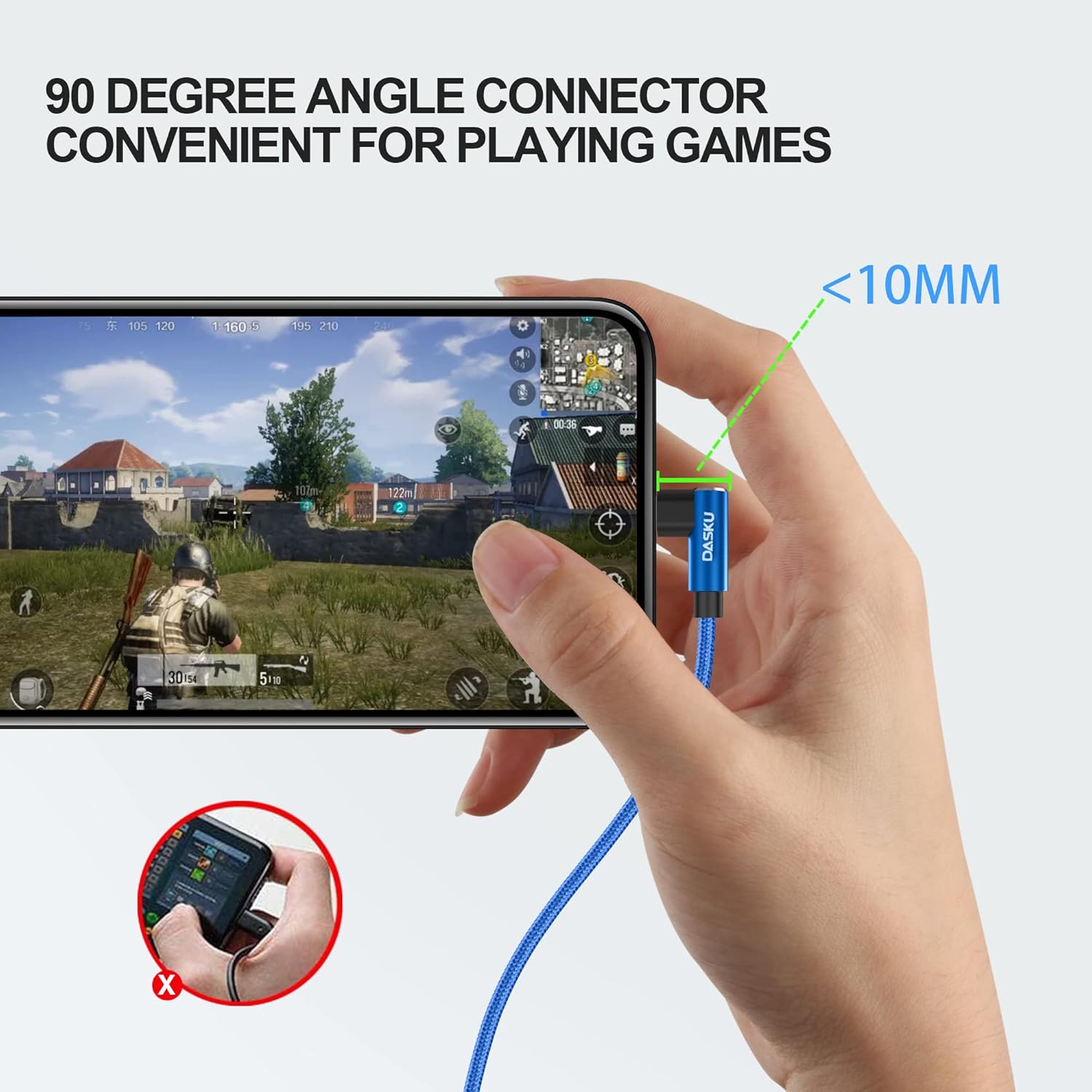 - 【90 degree right angle design】Special right angle design not only give you great convenience of playing games, increase winning probability, but also easier to watching movies or videos when charging power. What's more, you do not worry bending and fraying the cable joints so that prolong its service life.