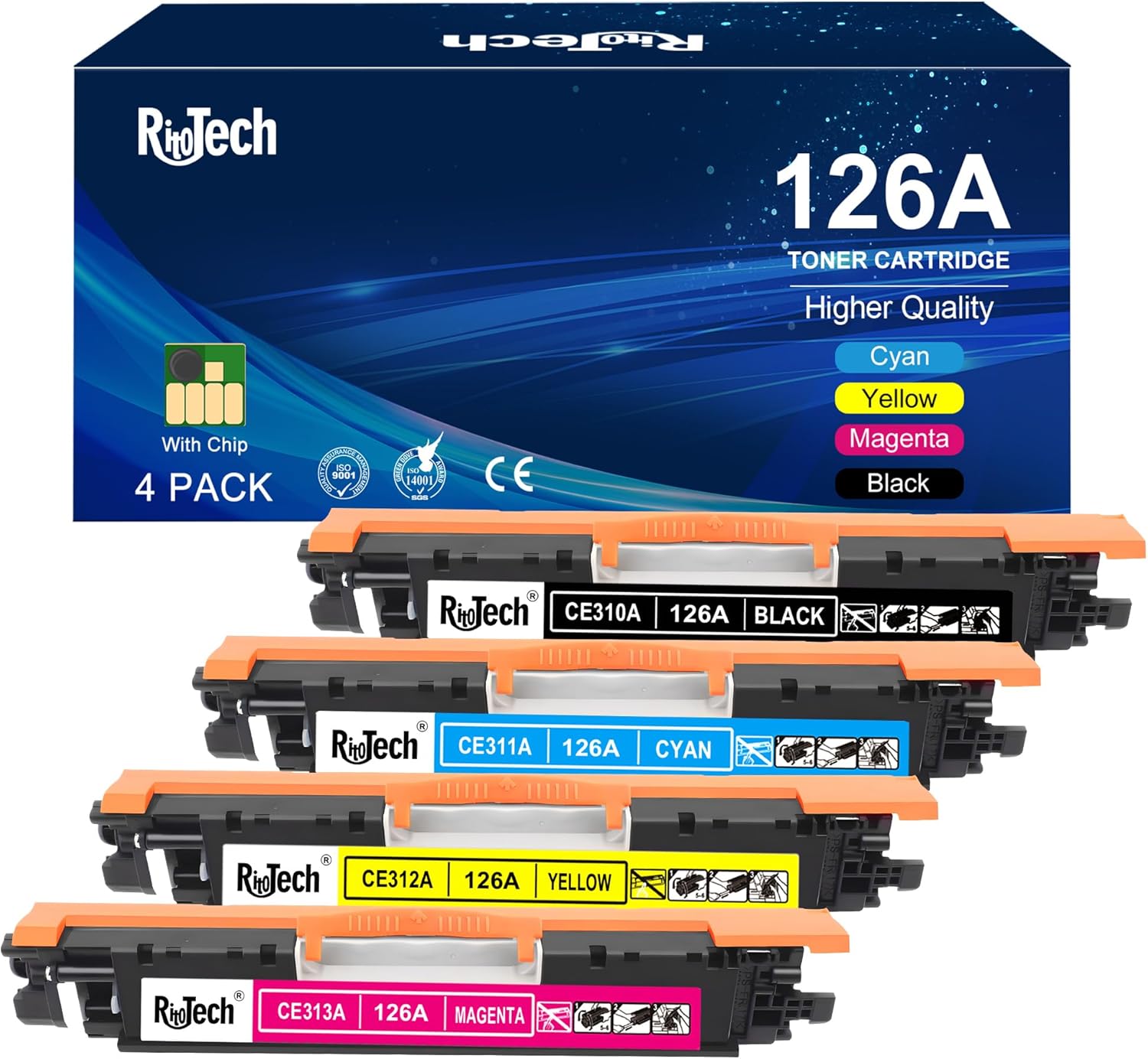 126A Toner Cartridge (with OEM CHIP),Replacement for HP 126 A CE310A CE311A CE312A CE313A for Laserjet Pro 100 Color MFP CP1025nw M175nw,M275 M275NW Printer, 4 Pack Black Cyan Magenta Yellow