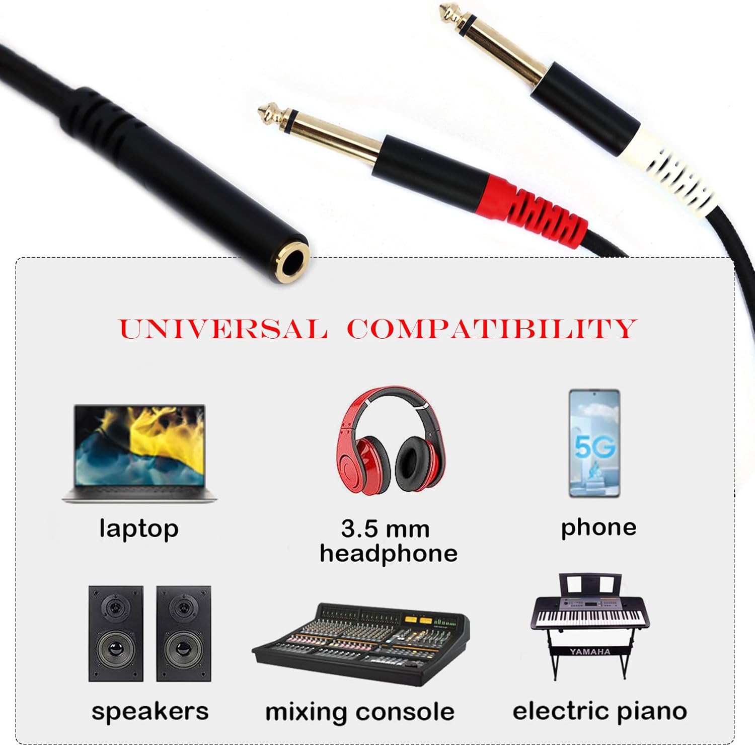 - ★Excellent Sound Transmission: The 3.5mm to 1/4 Y splitter cable uses high-quality 20 AWG 4N oxygen-free copper and heavy-duty 24K connectors to prevent EMI and RFI signal interference/loss and transmit HI-FI pure sound quality, ensuring the highest quality audio transmission.