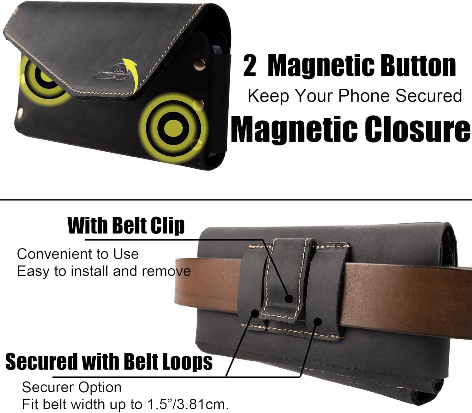 - ➤Premium Material Better Workmanship:This leather cell phone case is handcrafted from premium natural leather, fine and tight stitching.Crazy Horse Leather is Easy to clean, scratch resistant, thick and long-lasting, the color of the surface will gradually change and become unique over time.Made of natural leather for long-lasting use. All-around leather protection completely wraps around your phone, protecting it from dust to prevent screen scratches and daily wear and tear.