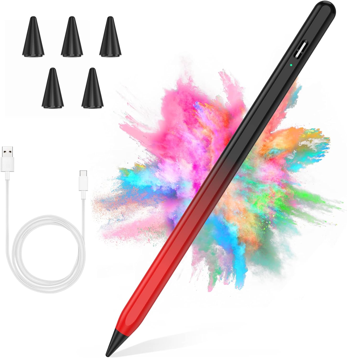 Stylus Pen for iPad 2018-2023 with Palm Rejection, Active Pencil for iPad 10th/9th/8th/7th/6th Gen, for iPad Pro 11/12.9 inch, for iPad Air 5th/4th/3th Gen, for iPad Mini 6th/5th Gen (Black and Red)