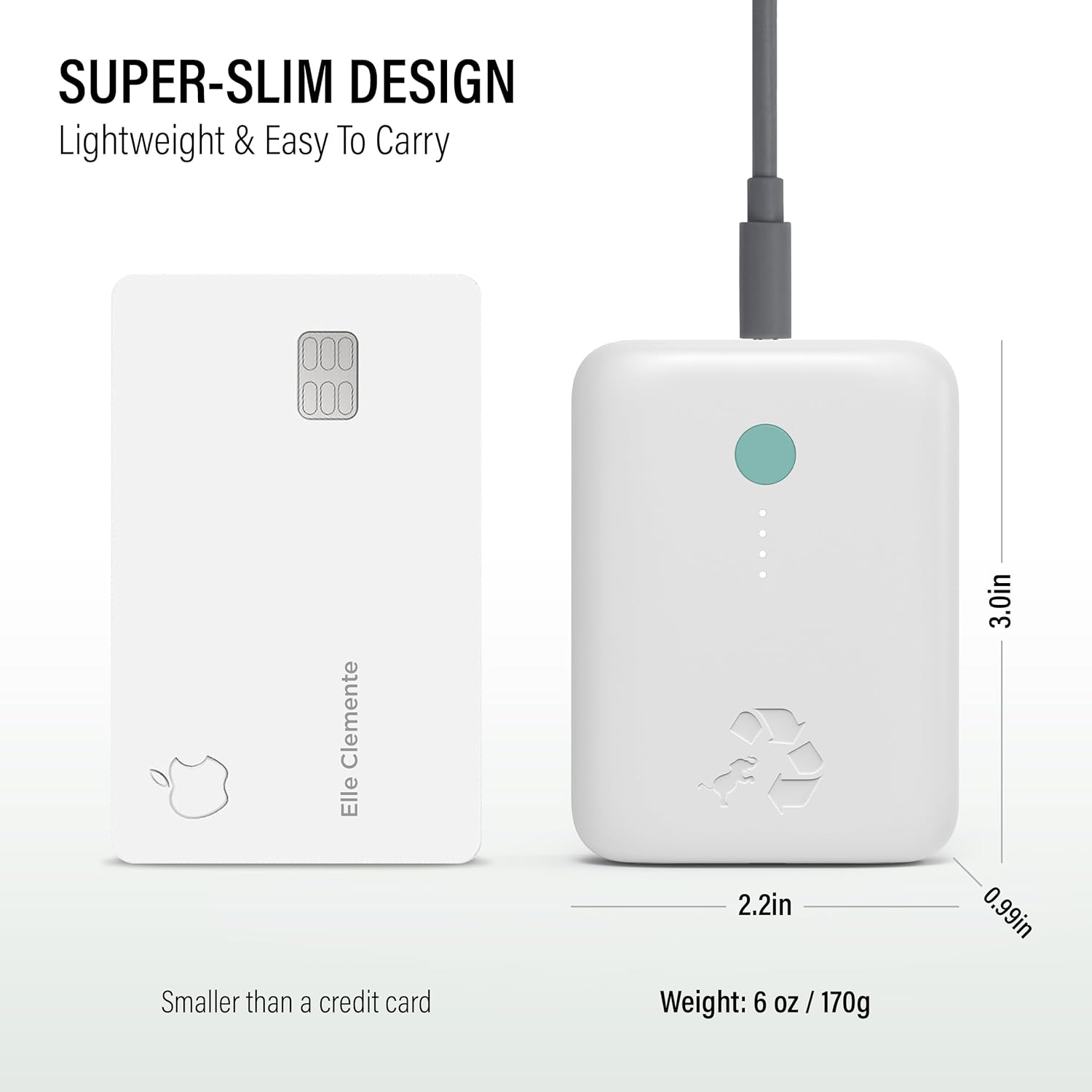 - Sustainable Design: Made from certified recycled plastic and aluminum, this battery pack charger portable helps reduce 6.42 lbs of CO2 emissions. Includes a prepaid mailer bag to responsibly recycle your battery bank or battery backup at no cost.