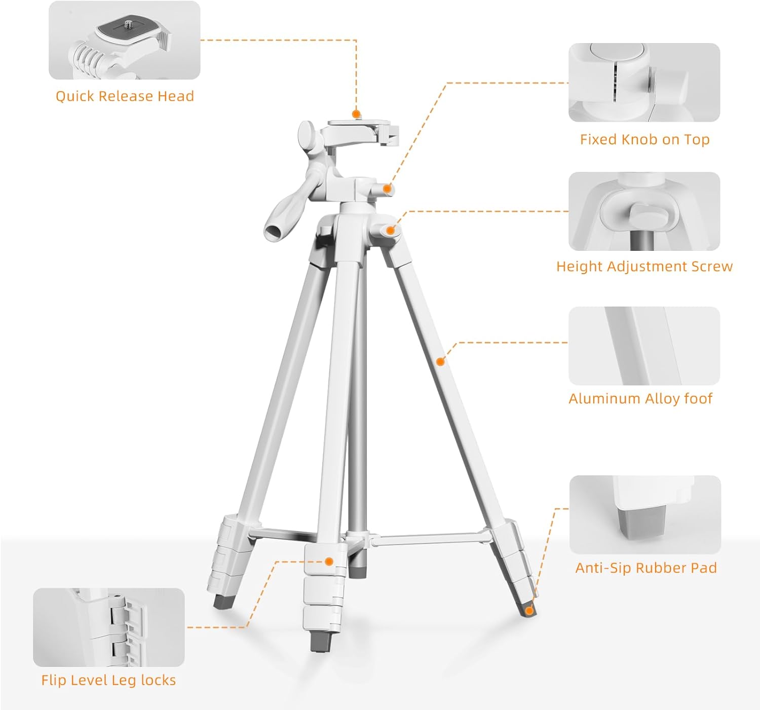 PHOPIK Extendable Tripod Stand - 55" Phone Tripod with 360 Panorama, Shutter-Video, 1/4" Mounting Screw for iPhone/Android/Sport Camera&Insta360 x5 - White