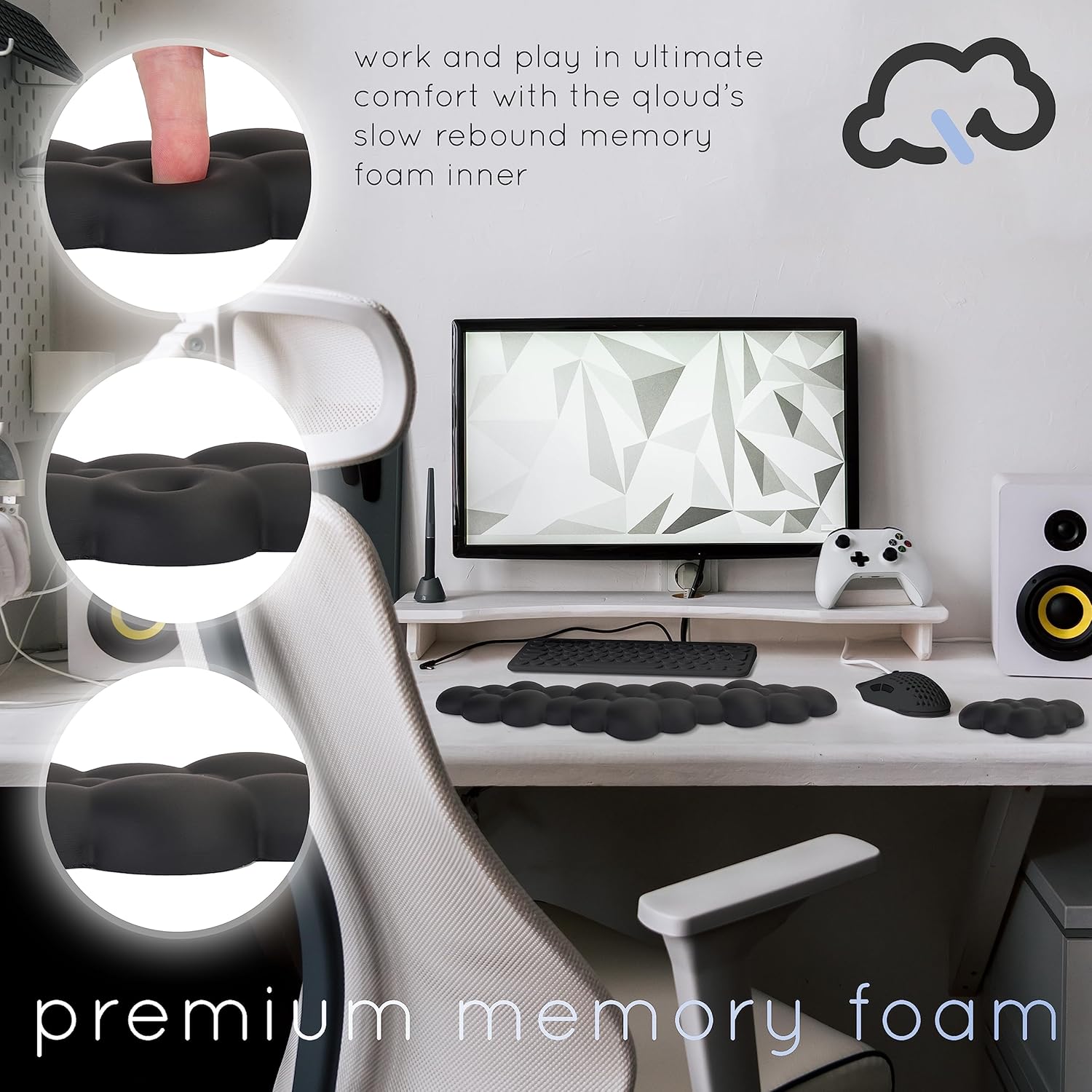 Qloud Cloud Wrist Rest Keyboard Wrist Rest for Computer Keyboard Pad, Cloud Keyboard Wrist Rest, Wrist Pad for Keyboard, Memory Foam, Non Slip Base, Comes with Mouse Pad - Matte Black