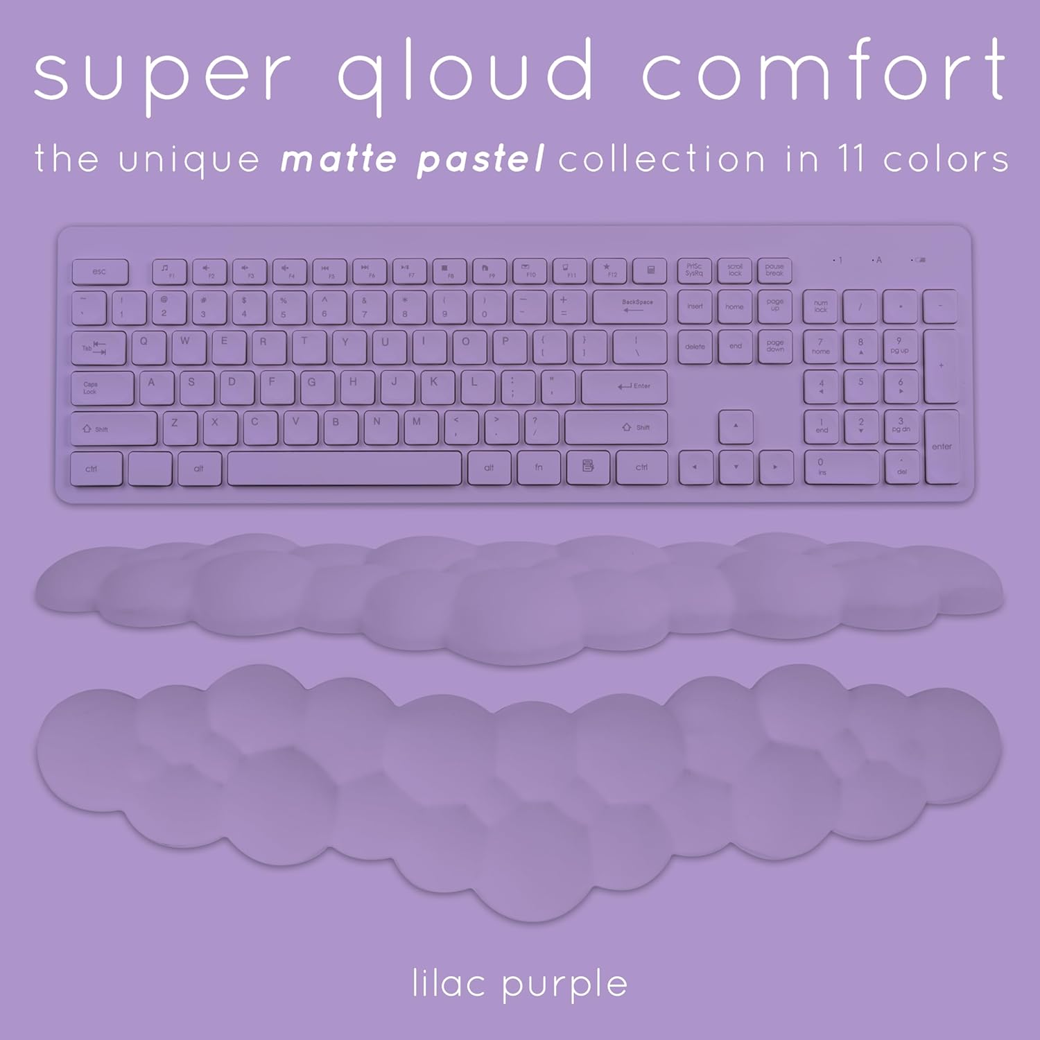 Qloud Cloud Wrist Rest Keyboard Wrist Rest for Computer Keyboard Pad, Cloud Keyboard Wrist Rest, Wrist Pad for Keyboard, Memory Foam, Non Slip Base, Comes with Mouse Pad - Lilac Purple