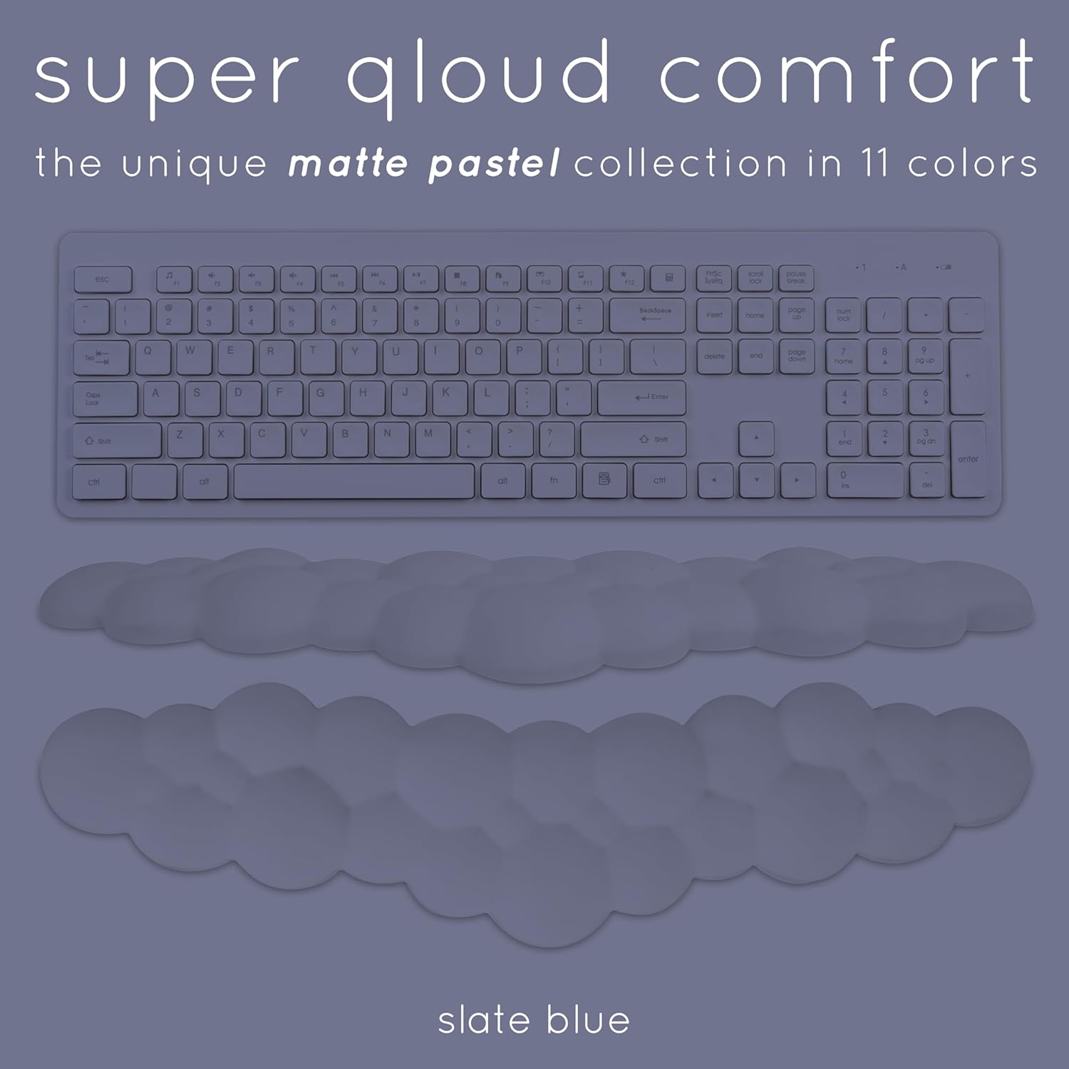 Qloud Cloud Wrist Rest Keyboard Wrist Rest for Computer Keyboard Pad, Cloud Keyboard Wrist Rest, Wrist Pad for Keyboard, Memory Foam, Non Slip Base, Comes with Mouse Pad - Slate Blue