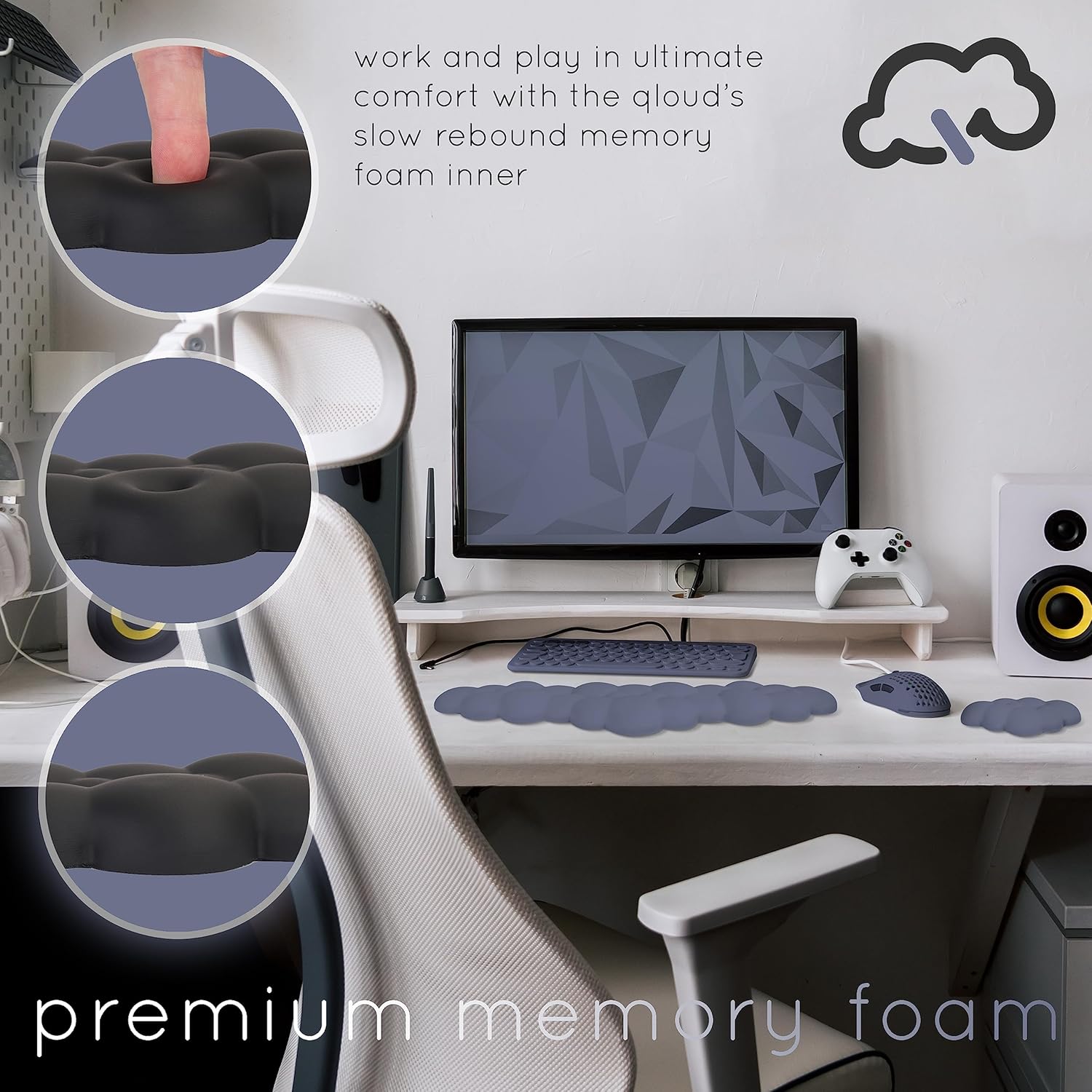 - Personalize Your Space โ Now available in 12 pastel colors, the Qloud wrist support for keyboard will compliment any desk setup. The arm rest for desk also features a non-slip base to make it suitable for any type of work environment with no unwanted movement. Make your desk stand out with the Qloud wrist rest for keyboard and mouse and work or game in comfort and style