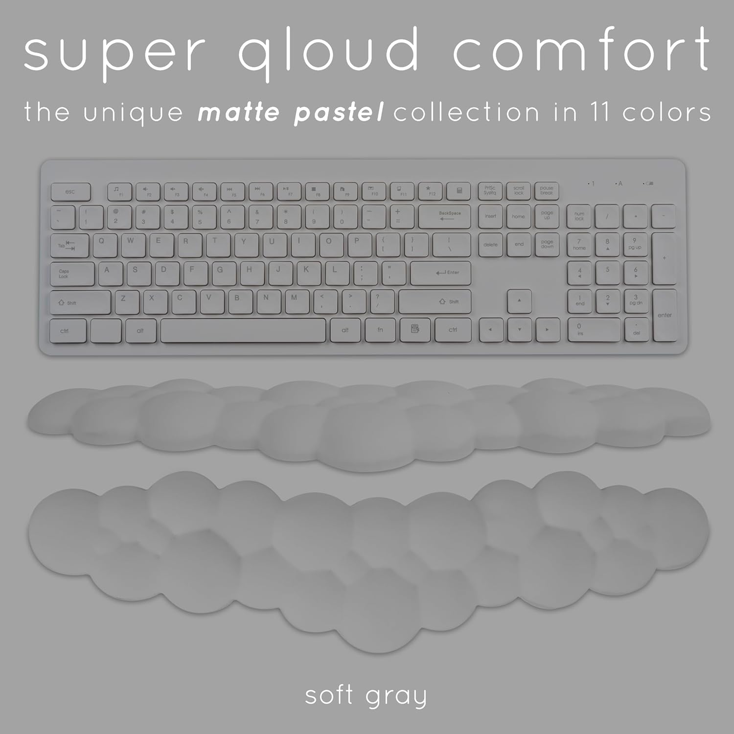 Qloud Cloud Wrist Rest Keyboard Wrist Rest for Computer Keyboard Pad, Cloud Keyboard Wrist Rest, Wrist Pad for Keyboard, Memory Foam, Non Slip Base, Comes with Mouse Pad - Soft Gray