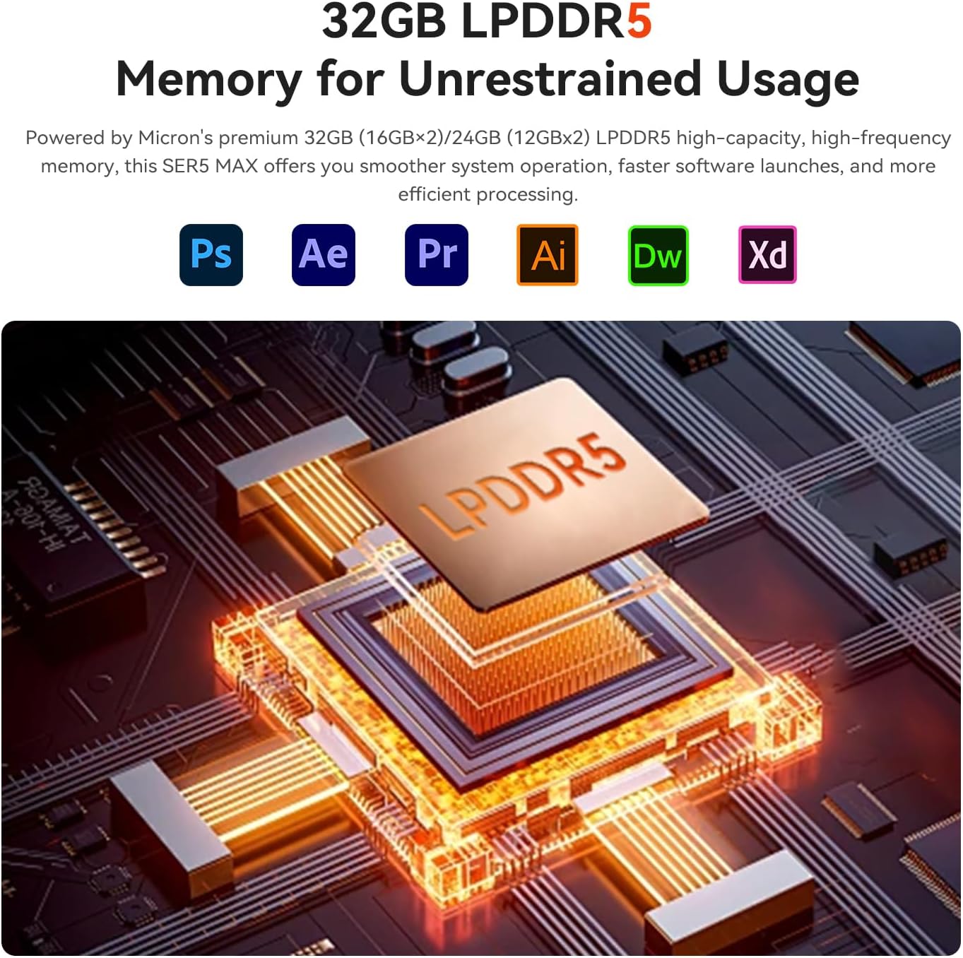 - ă32GB LPDDR5 RAM & 1TB SSDăThe TRIGKEY Ryzen 7 S6 Mini PC comes with 2 accessible memory slots that can be upgraded up to 32 GB (2 x 16 GB) of dual-channel LPDDR5 RAM. The Mini Computer also has a 1TB M.2 PCIe NVMe 2280 SSD, dual SSD slots, max 2*4TB as per your needs.