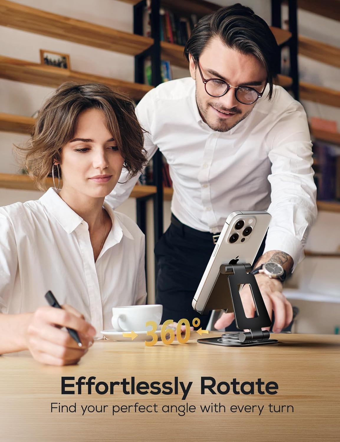 - 360° Rotatable Freedom: This phone stand offers a full 360° rotation, allowing you to adjust the viewing angle to your preference effortlessly. Enjoy hands-free comfort whether you're watching videos, video calling, or sharing your screen.