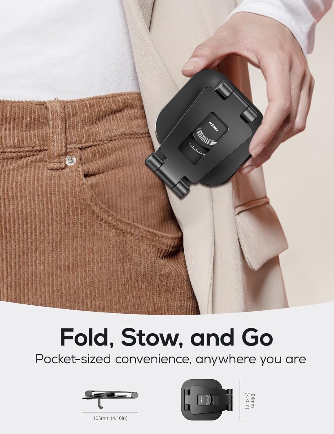 - Portable and Foldable: Designed for life on the go, this cell phone stand is fully foldable and easily fits into your pocket, bag, or backpack. Take it with you wherever you need it and set it up effortlessly, whether you're at home, in the office, or traveling.