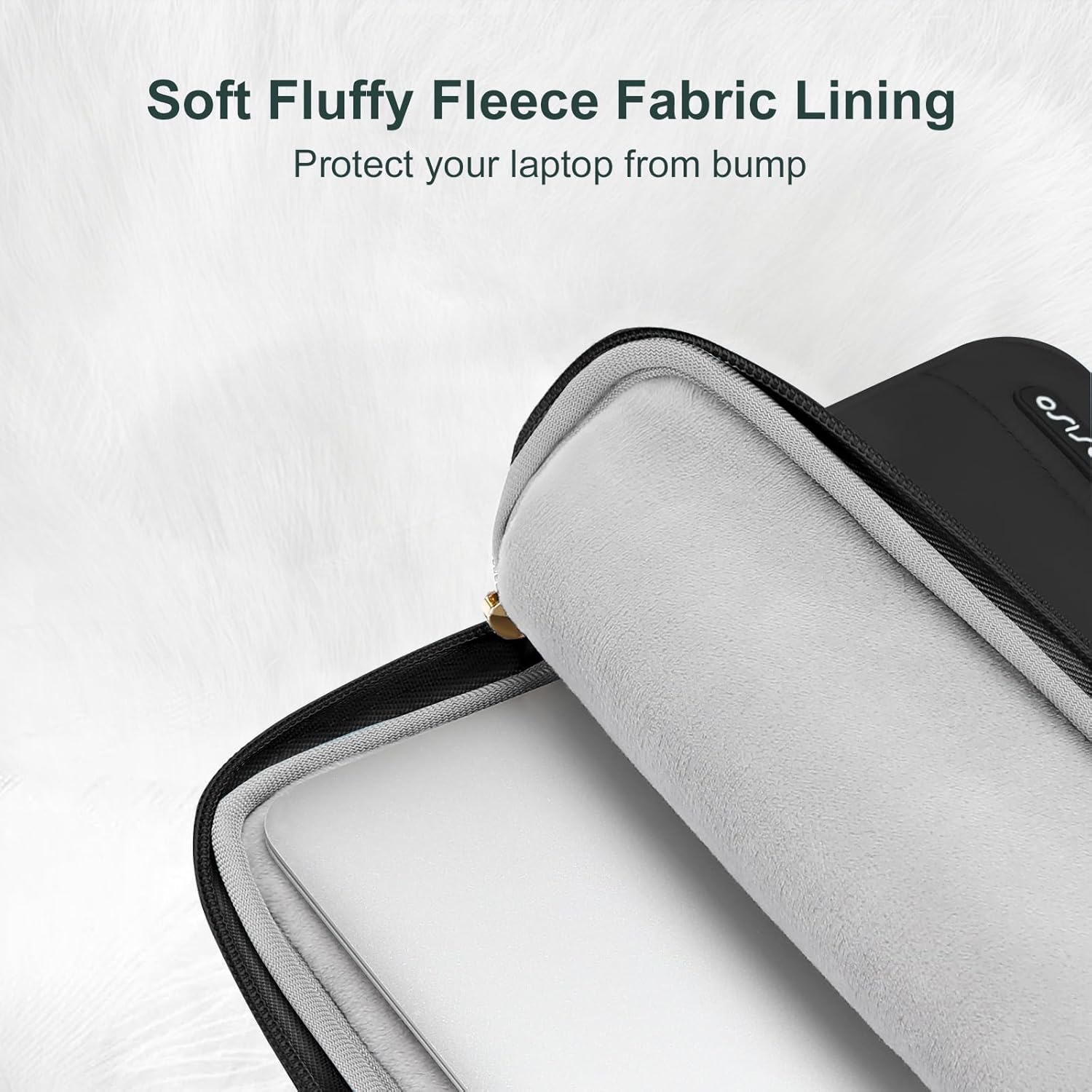 - Made with soft touch puffy polyester material, features a polyester foam padding layer and fluffy fleece fabric lining. Protect your laptop from bump, shock and accidental scratches.