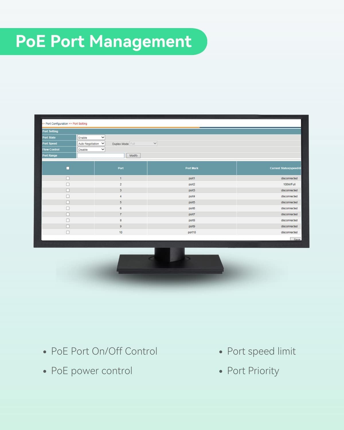 - PoE WATCHDOG -Continuously monitoring PoE ports and automatically reboot PD device if it is freezing.