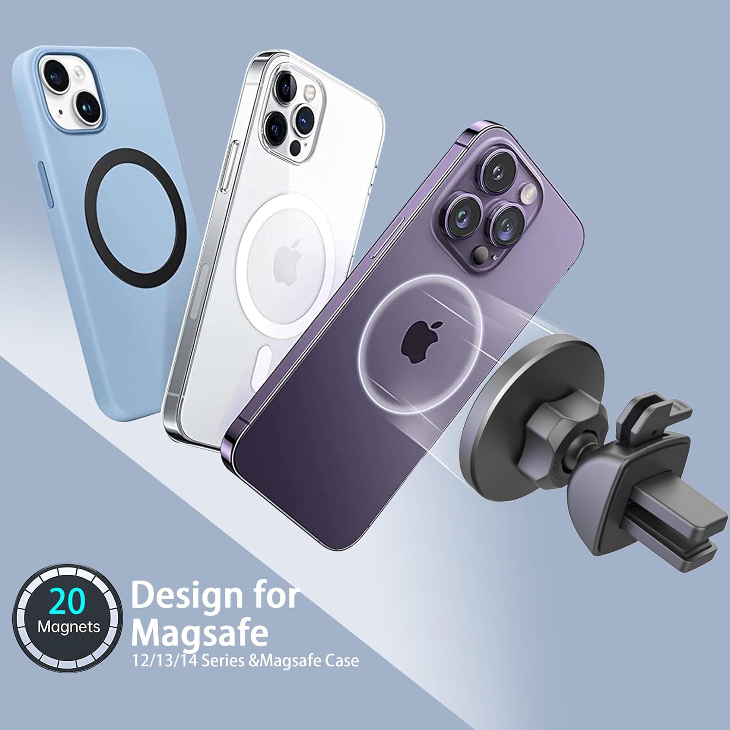 Car Vent Phone Mount - Magnetic Phone Holder for Car, Very Strong Magnet, Upgrade Twist Lock AC Mount, Compatible with MagSafe, iPhone, Galaxy, Pixel & Other Smartphones, 360 Adjustable