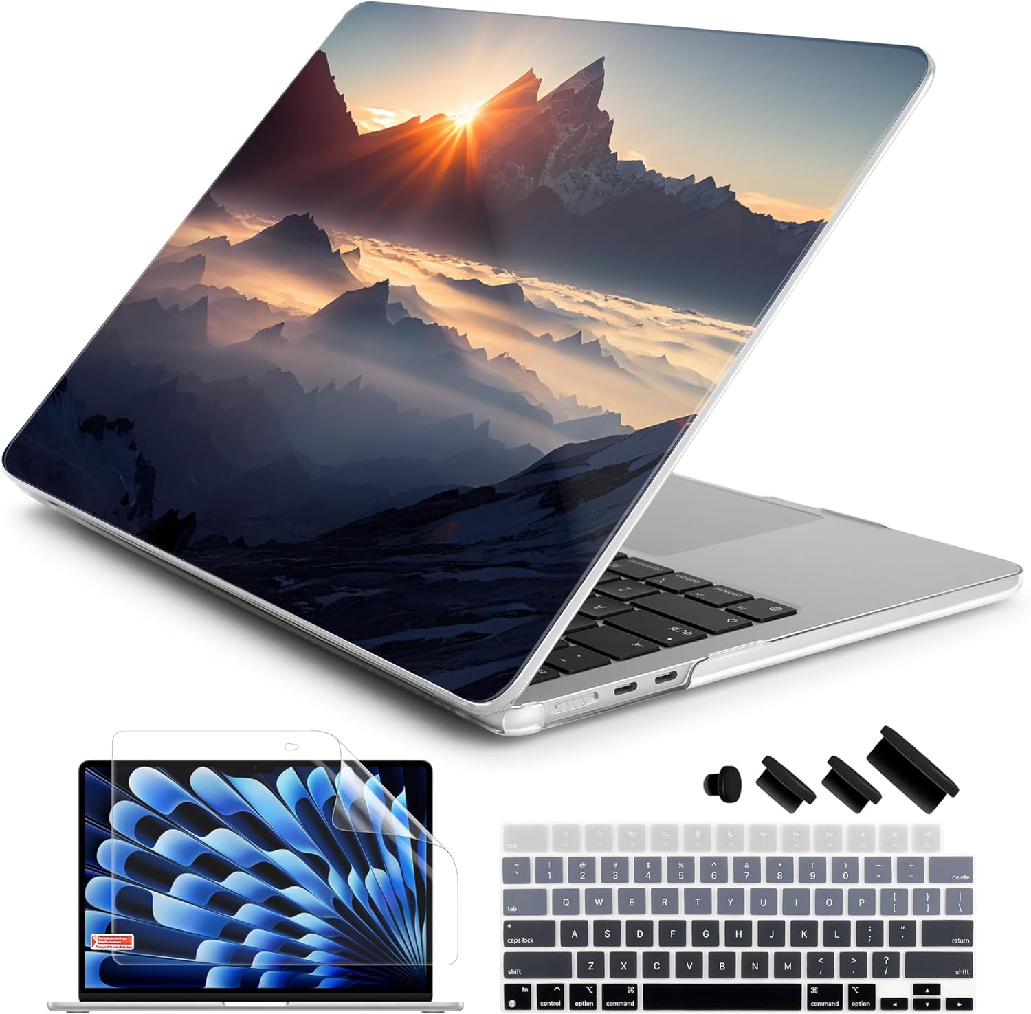 - Full set of accessories: Our MacBook Air case comes with a keyboard cover and screen protector ,port silicone plugs that helps to protect your keyboard and screen from dust, dirt, and spills. The cover is easy to install and provides an extra layer of protection for your laptop.