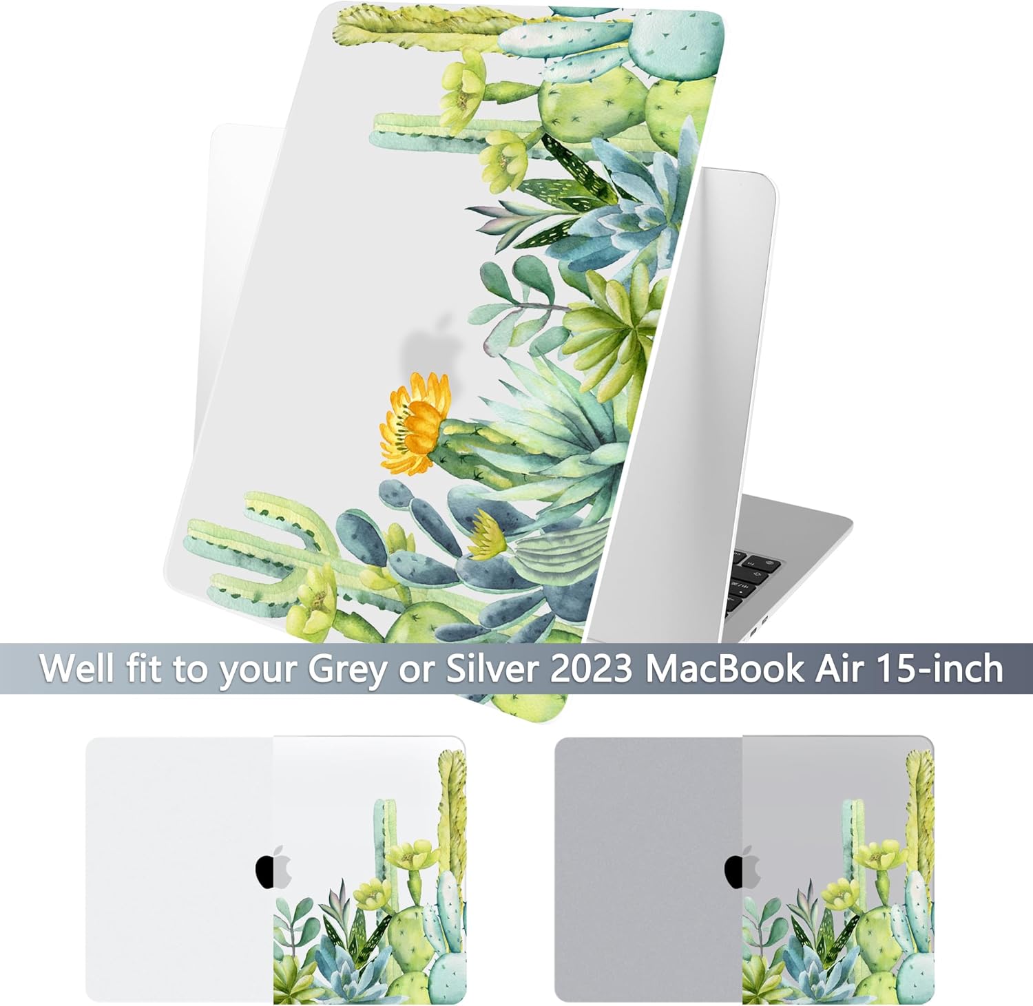 Batianda Premium Case for New MacBook Air 15 inch 2025 M4 2024 2023 with M3 M2 Chip Model A3241/A3114/A2941, Designed Protective Plastic Hardshell & Keyboard Cover & Screen Protector, Cactus