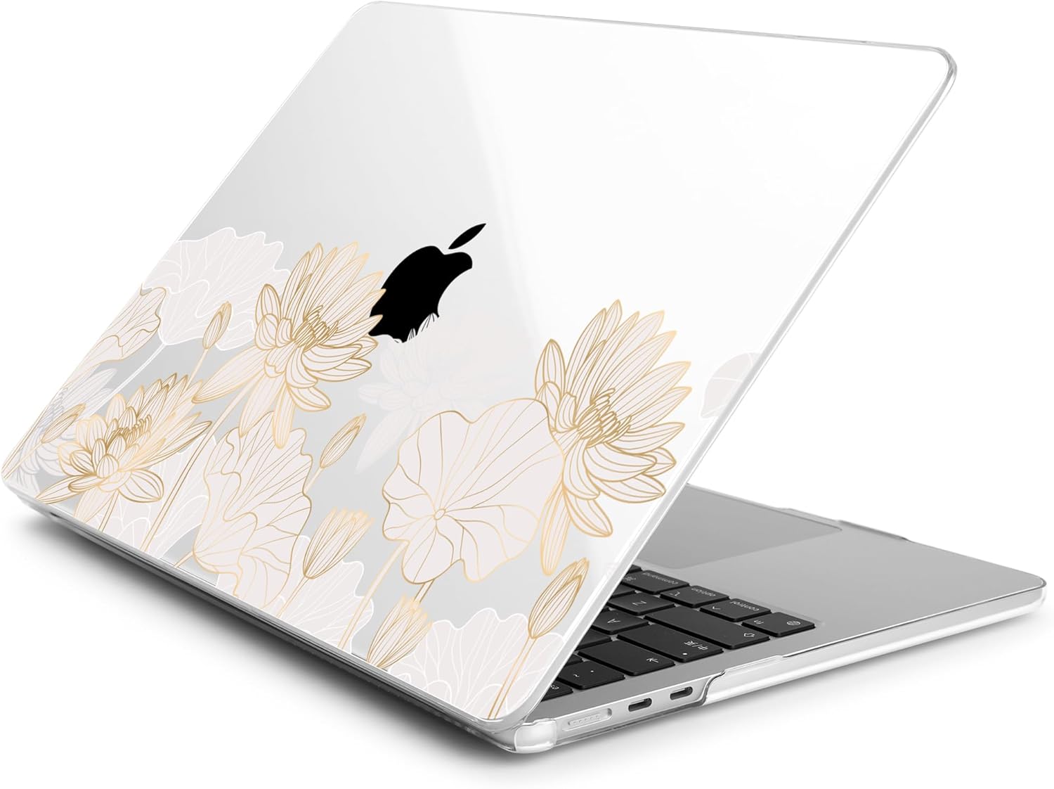 Batianda Premium Case for New MacBook Air 15 inch 2025 M4 2024 2023 with M3 M2 Chip Model A3241/A3114/A2941, Designed Protective Plastic Hardshell & Keyboard Cover & Screen Protector, Gold Lotus