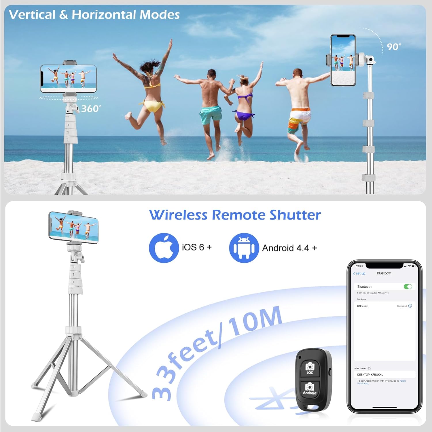 - What You Get: 1X Phone Stick Tripod; 1X Universal Phone Holder; 1X Adapter; 1X Remote Shutter. We will provide professional after-sales for 12 months. Please contact us anytime if any question
