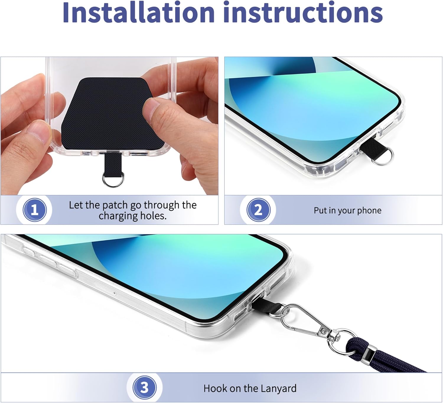 - 【Easy Installation】No tools are required. You just need to insert the pad through the charging hole of the fully covered phone case, then plug in your phone and connect to the lanyard. Please note that the half cover phone case is not supported.