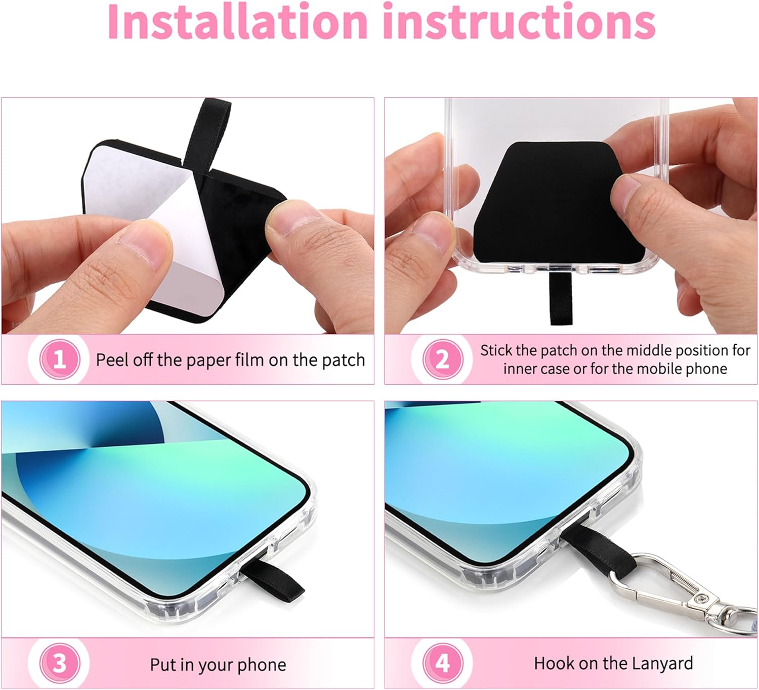 - 【Easy Installation】No tools are required. You just need to insert the pad through the charging hole of the fully covered phone case, then plug in your phone and connect to the lanyard. Please note that the half cover phone case is not supported.