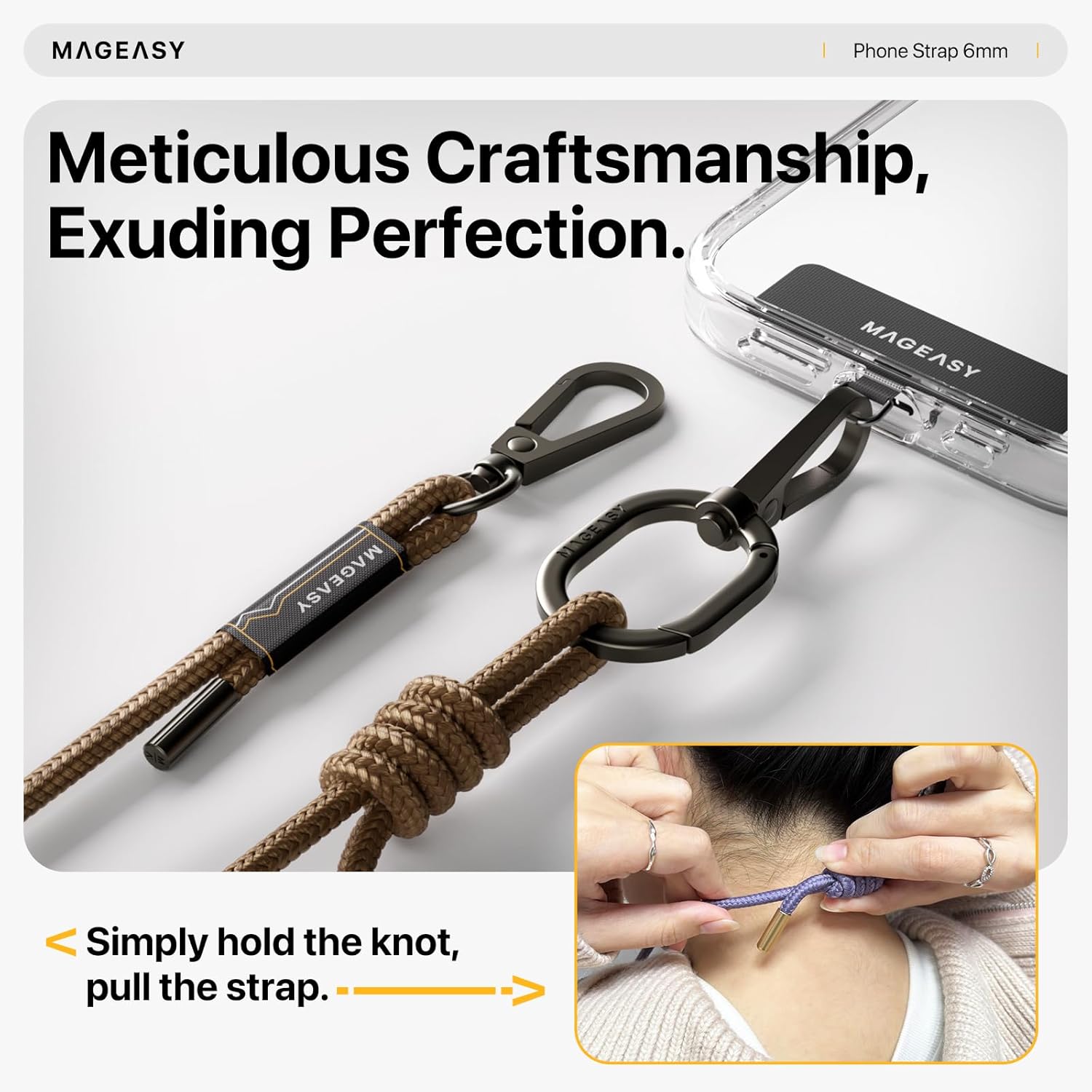 - [Perfect In Every Detail] The MAGEASY fashionable hands-free phone strap is made with exceptionally high-quality metal and features a hypoallergenic and comfortable strap, setting you apart from those who settle for cheap, dull, and rigid straps.