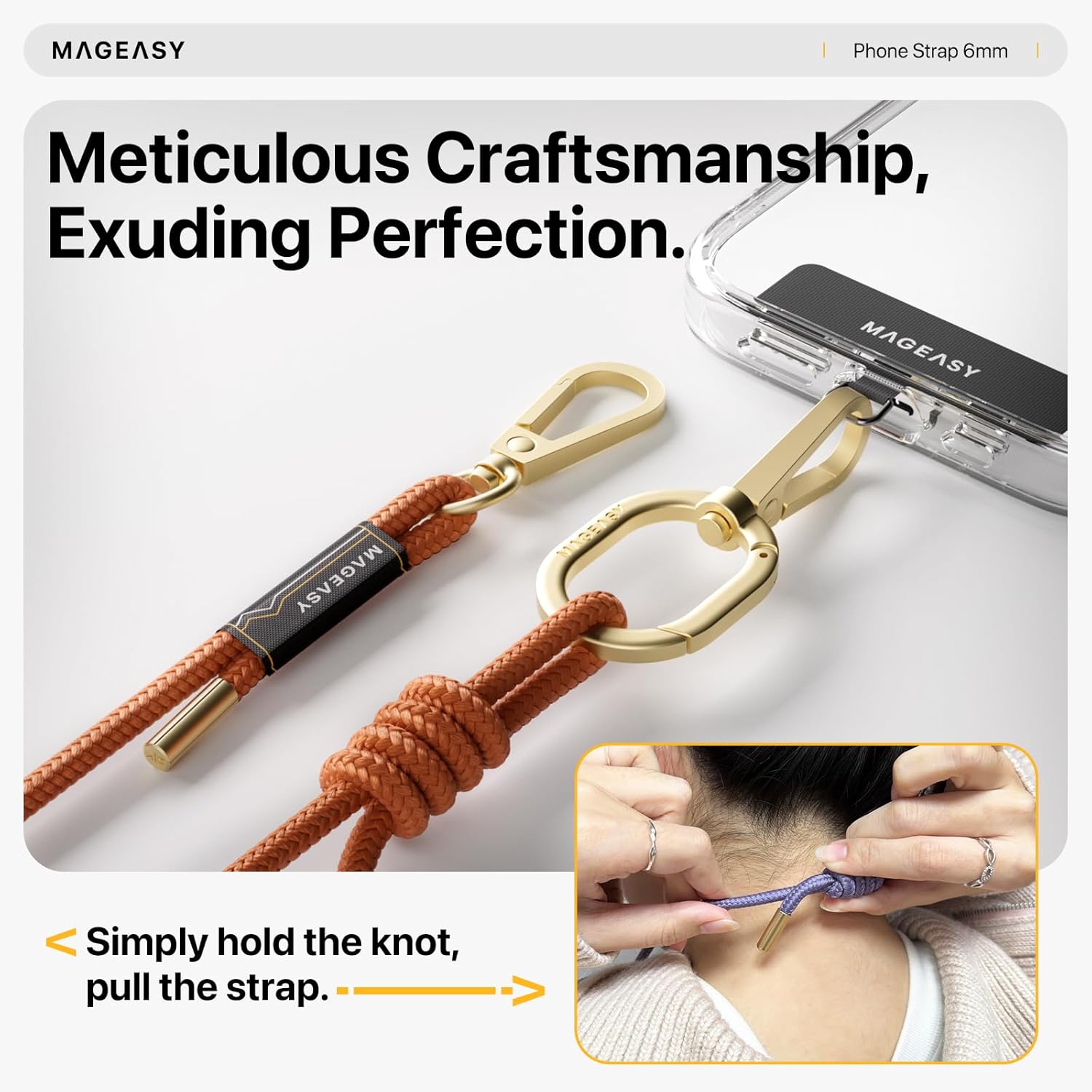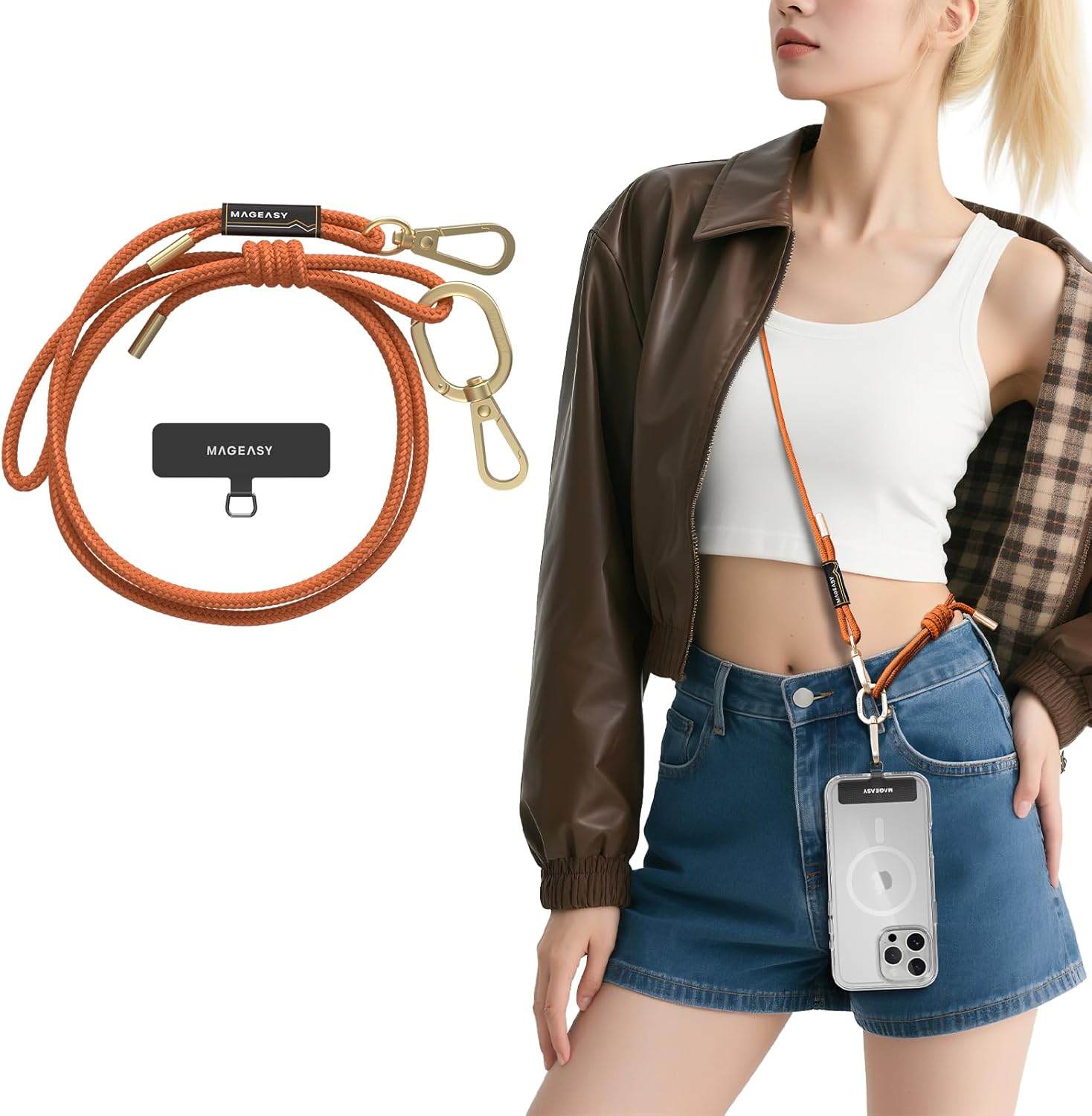 - [Perfect In Every Detail] The MAGEASY fashionable hands-free phone strap is made with exceptionally high-quality metal and features a hypoallergenic and comfortable strap, setting you apart from those who settle for cheap, dull, and rigid straps.