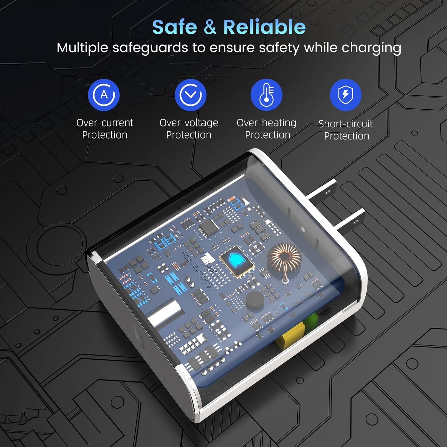 - 【Safe & Reliable】- Built-in intelligent chip and multi-protect system, this Android Charger Fast Charging Block can auto-detect the power your device needs and adjust accordingly, also monitor temperature and voltage in real time to protect your devices against overvoltage, overcurrent, overheating, and short-circuit.. As battery is getting full through continuous high-speed charging, it will gradually decrease charging power to reduce heat and ensure your device’s safety and longevity.
