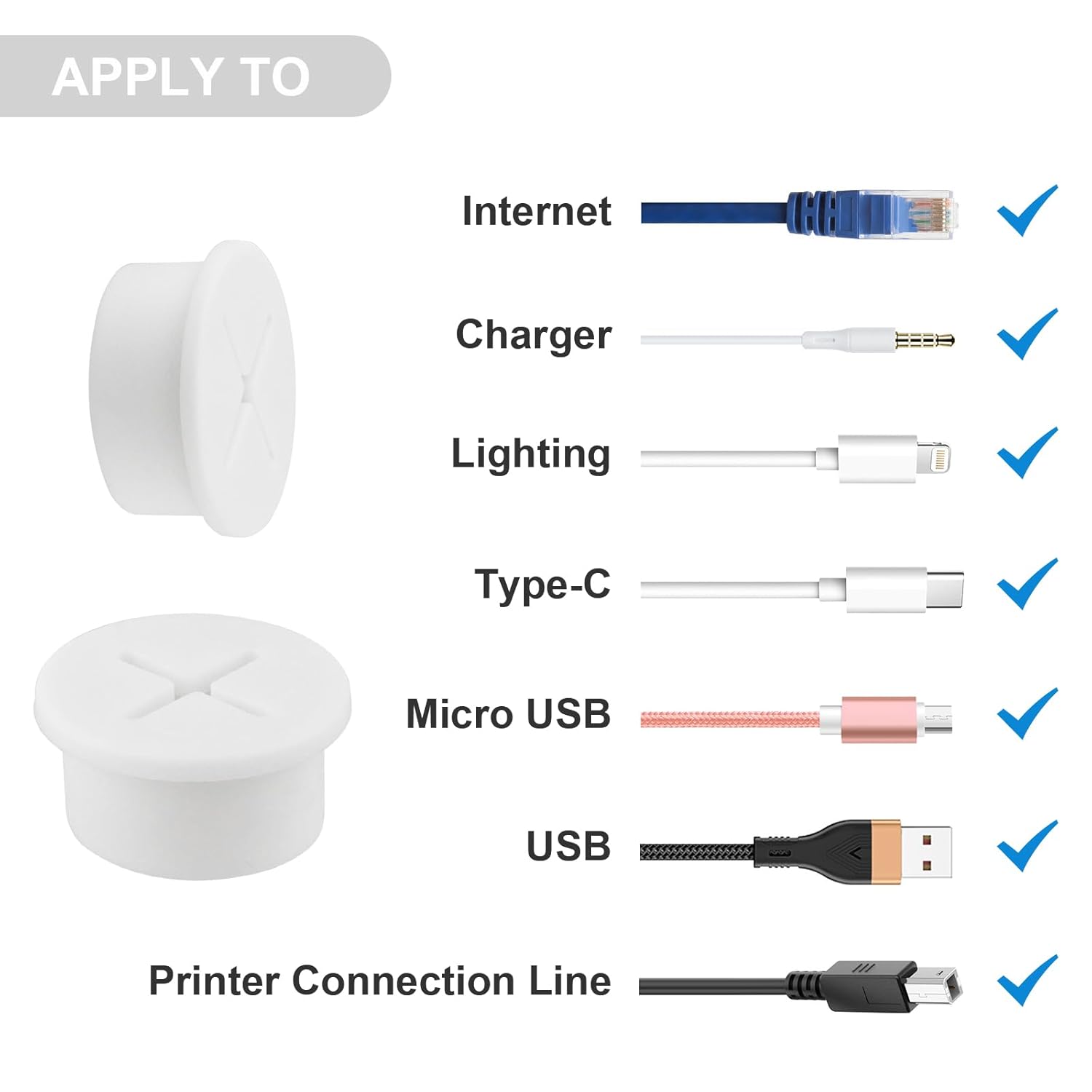 - 【Package Content】You will receive 12pcs white desk grommets in the package,The grommets are made of sturdy silicone Rubber,and suitable for 1inch (25mm) holes.Durable and Corrosion Resistance.