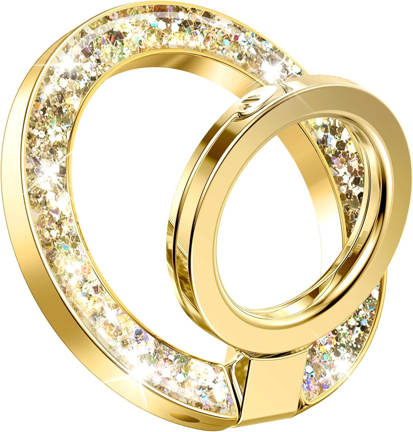 GVIEWIN Magnetic Phone Ring Holder, Compatible with MagSafe Phone Grip with Adjustable Stand, Magnet Phone Ring Kickstand for iPhone 16 Pro Max/Plus/15/14/13/12 Series/Other Phones (Glitter/Gold)