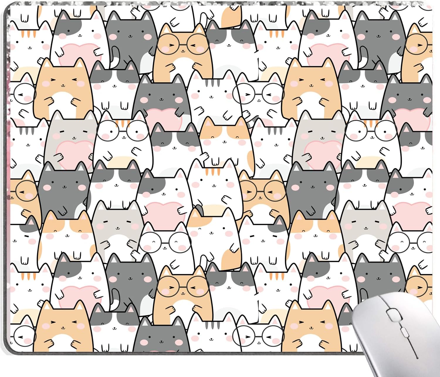 Kawaii Mouse Pad, Cute Cats Mouse Mat, Square Waterproof Non-Slip Rubber Base Computer MousePads for Desk Office Laptop