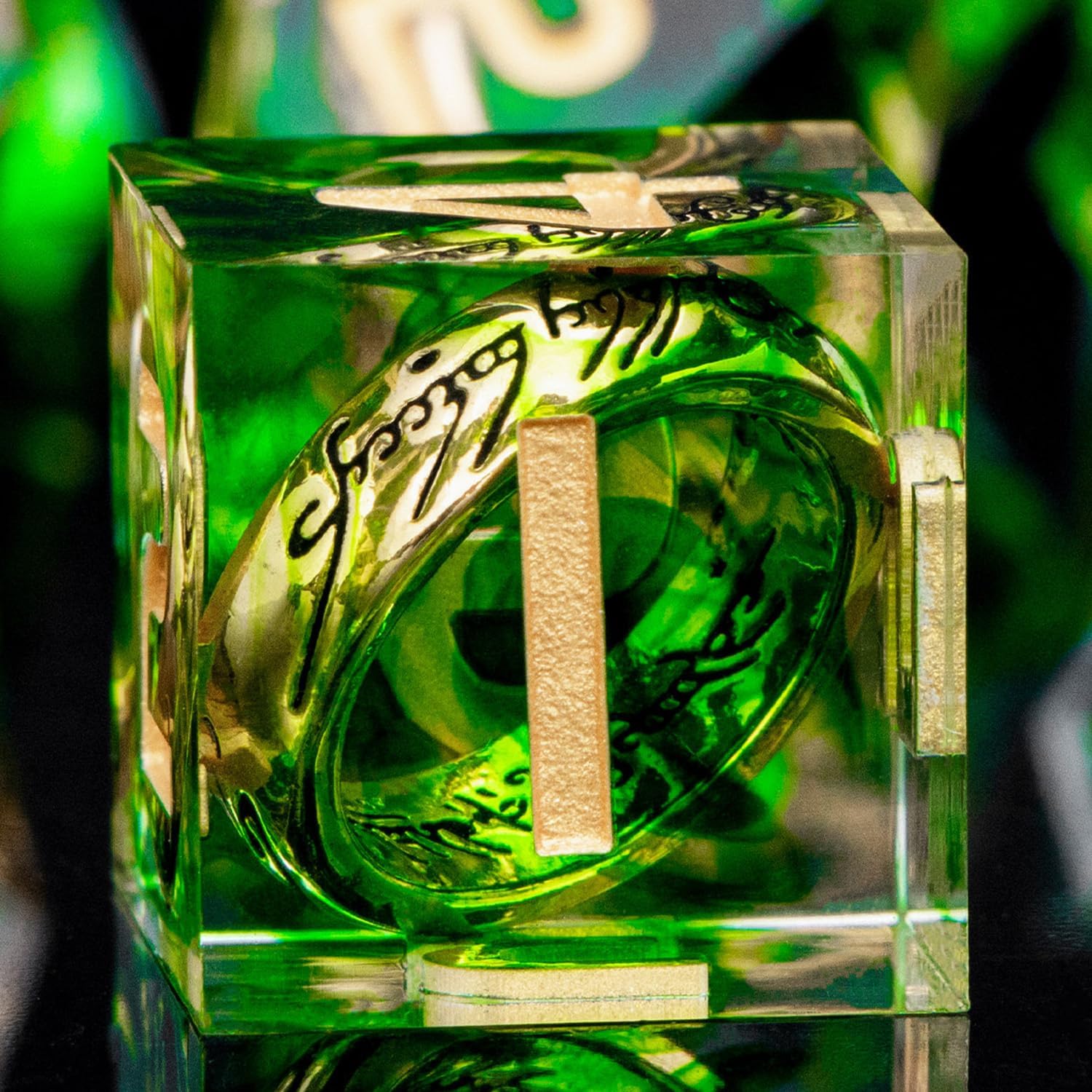 Magic Golden Ring DND Dice with Box, Green Sharp Edge Handmade D and D Polyhedral Dice for use with D&D Tabletop Games RPG, Lord Resin Dice D20 D12 D10 D8 D6 D4