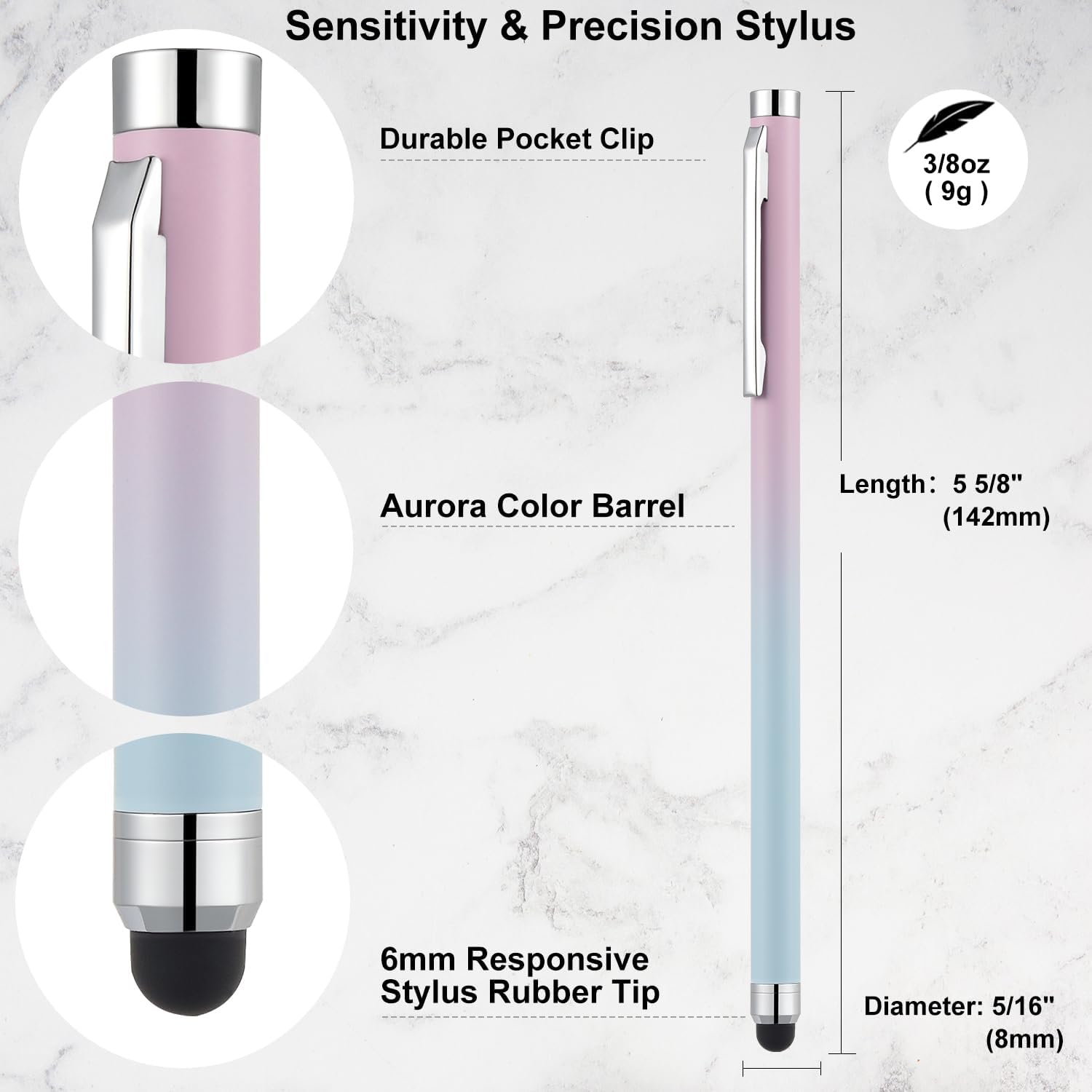 - Aesthetic Stylus: The aesthetic stylus pen with aurora color accent barrel has a well-balanced weight, which is comfortable to hold and easy to use for browsing, playing, writing, and drawing.
