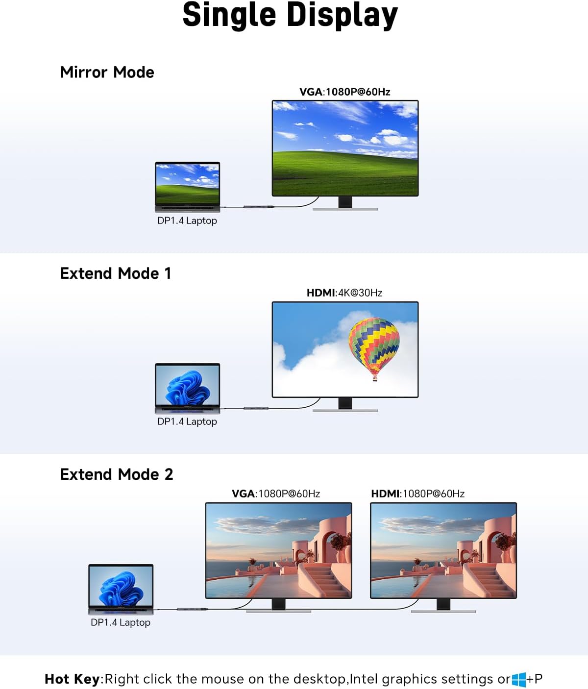 - [USB C Docking Station For Laptop]:Dual monitor support Connect two monitors simultaneously to expand your workspace and enhance productivity with this USB C docking station.