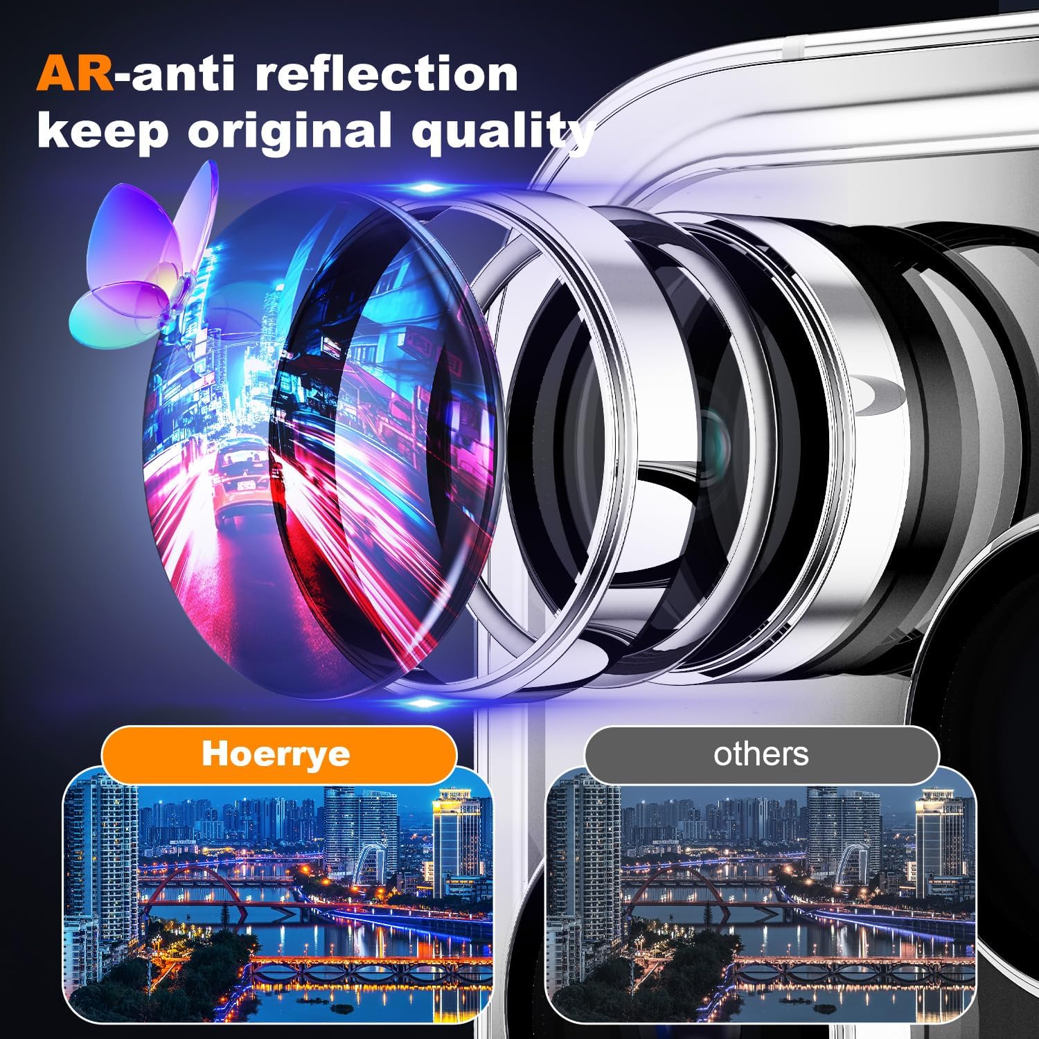 - ăOriginal Image Straight OutăUpgraded AR anti-reflective technology and 99.99% optical-grade transmittance HD 9H tempered glass,effectively blocking and filtering ultraviolet rays, will not affect the quality of a photograph which ensures original high resolution for pictures and videos.