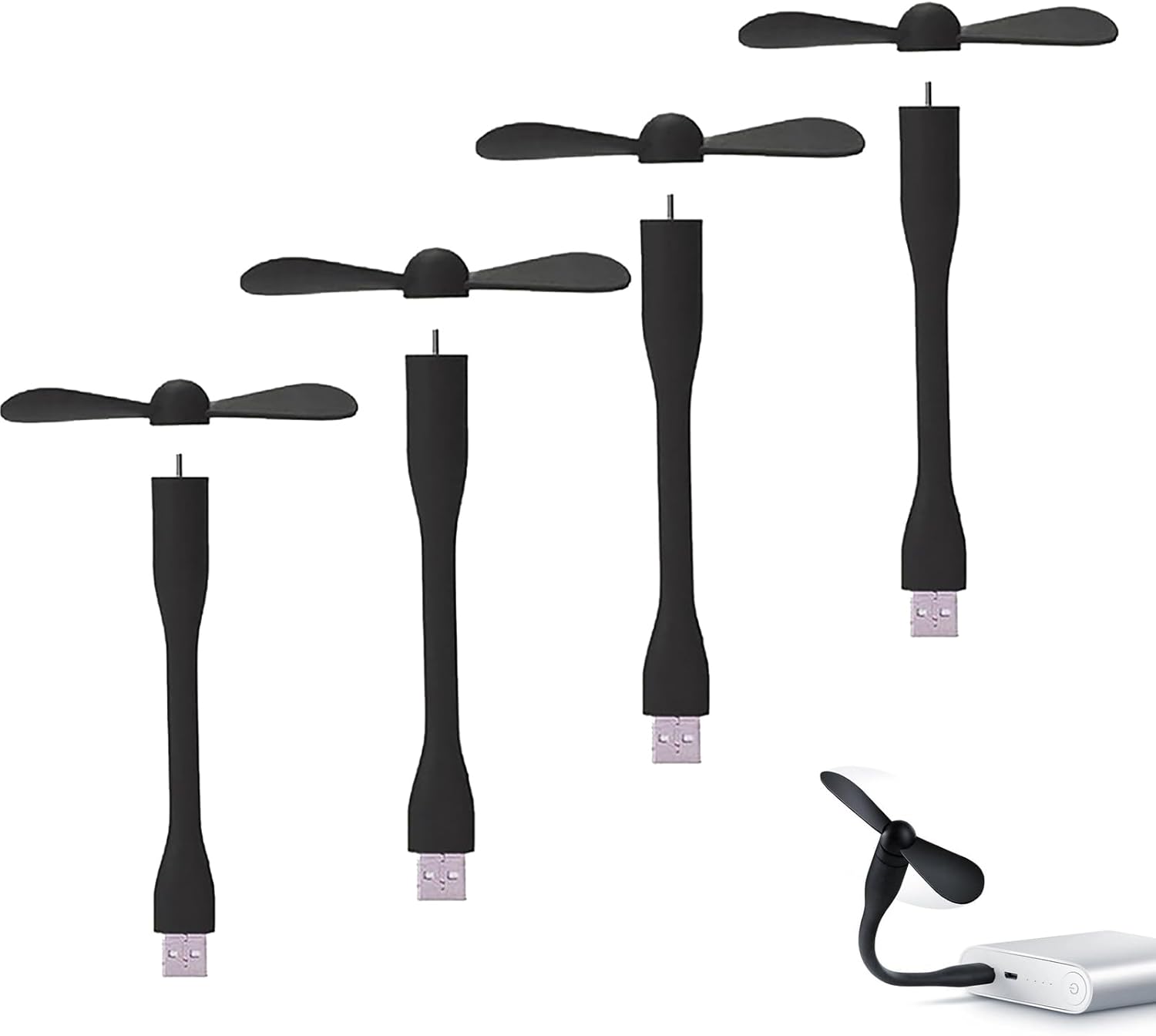 Mini USB Fan, Portable Pocket Fan USB-A Powered Little Cooler, Quiet Operation, for Home Office Car Outdoor Travel- 4 Pack (Black)